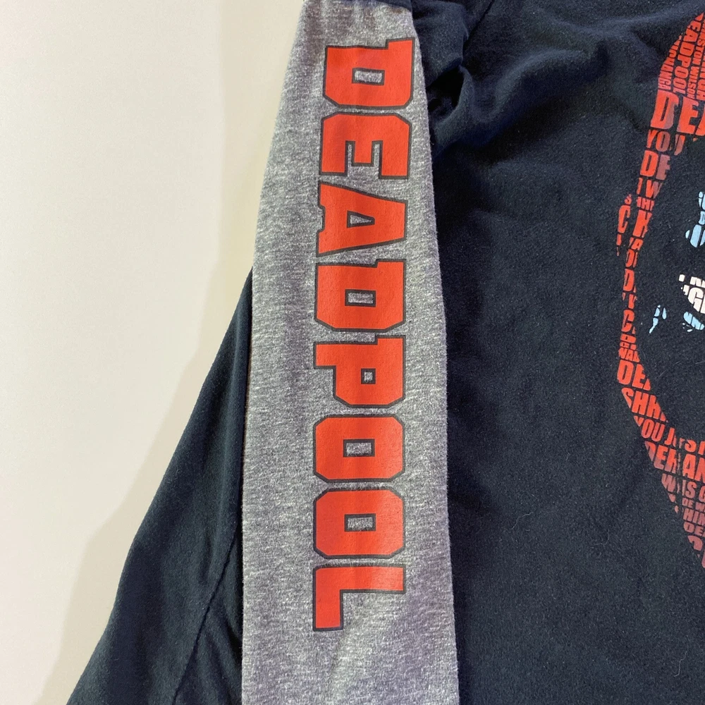 This MARVEL Deadpool Words Long Sleeve Faux Double Jersey T-Shirt is a must-have for any fan of the iconic superhero. The shirt features a classic fit with a crew neck and long sleeves, making it perfect for any occasion, whether it's a casual day out or a winter evening. The black color and splatter pattern add a touch of style to the shirt, and the graphic print of Deadpool's words and image ensures that you'll stand out in a crowd. The shirt is made of jersey fabric, making it comfortable and machine washable, and it's available in size L for men. Whether you're a collector or just looking for a unique addition to your wardrobe, this designer T-shirt is perfect for you. So why wait? Add this MARVEL Deadpool Words Long Sleeve Faux Double Jersey T-Shirt to your collection today!