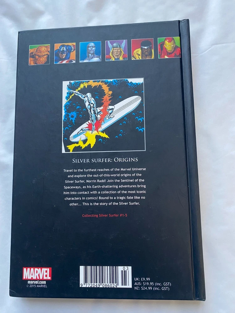 MARVEL THE ULTIMATE GRAPHIC NOVELS COLLECTION SILVER SURFER ORIGINS CLASSIC XIV This product data sheet is originally written in English. YOU ARE BUYING A MARVEL NOVEL - ISSUE NUMBER 103 (VOLUME CLASSIC XIV ) FRO M THE ULTIMATE GRAPHIC NOVELS COLLECTION MADE BY HACHETTE A UNIQUE HARDBACK NOVEL THAT HAS BEEN WRITTEN BY SOME OF MARVEL'S BEST ORIGINAL WRITERS! VERY GOOD CONDITION - ALL PAGES COMPLETE AND NO WRITING ON ANY PAGES - MAY BE SLIGHT SHELF WEAR CHECK OUT THE OTHER ITEMS IN MY SHOP - AS HUGE POSTAGE DISCOUNTS ARE OFFERED FOR MULTIPLE BUYS - INCLUDING FREE POSTAGE FOR EVERY ADDITIONAL MARVEL MAGAZINE PURCHASED (WITHIN UK ONLY)!! YOU ARE BUYING A MARVEL NOVEL - ISSUE NUMBER 103 (VOLUME CLASSIC XIV)Â FROM THE ULTIMATE GRAPHIC NOVELS COLLECTION MADE BY HACHETTE A UNIQUE HARDBACK NOVEL THAT HAS BEEN WRITTEN BY SOME OF MARVEL'S BEST ORIGINAL WRITERS! VERY GOOD CONDITION - ALL PAGES COMPLETE AND NO WRITING ON ANY PAGES - MAY BE SLIGHT SHELF WEAR CHECK OUT THE OTHER ITEMS IN MY SHOP - AS HUGE POSTAGE DISCOUNTS ARE OFFERED FOR MULTIPLE BUYS - INCLUDING FREE POSTAGE FOR EVERY ADDITIONAL MARVEL MAGAZINE PURCHASED (WITHIN UK ONLY)!! Format Hardcover Language English Series Title Marvel Graphic Novel Publisher Marvel Comics Country/Region of Manufacture United Kingdom Publication Year 2013 Type Graphic Novel Universe Marvel (MCU) Genre Superheroes