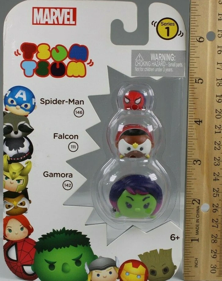 MARVEL TSUM TSUM SERIES 1 GAMORA, FALCON, SPIDER-MAN FIGURES 3 PACK 2016 SEALED MARVEL TSUM TSUM SERIES 1 THREE PACK COLLECT, STACK AND DISPLAY YOUR FAVORITE MARVEL CHARACTERS ✨✨✨ 3 PACK INCLUDES 1 SMALL, 1 MEDIUM and 1 LARGE SIZE TSUM TSUM MARVEL FIGURES GAMORA 142 LARGE FALCON 111 MEDIUM SPIDER-MAN 146 SMALL COMES WITH COLLECTORS GUIDE PACKAGING IS IN VERY GOOD LIKE NEW CONDITION JAAKS PACIFIC FROM 2016 WOULD MAKE A GREAT GIFT Will ship to you with great care. Will ship to the United States and Protectorates via USPS International shipments will ship via Ebay's Global Shipping Program (GSP) International packages will ship within one business day to eBay's GSP. eBay's GSP will then ship the package internationally. Handling and Shipping times may vary with GSP. Brought to you by The VinKris Collection .