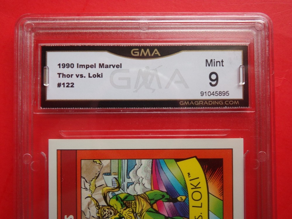 MARVEL UNIVERSE IMPEL 1990 CARDS GMA GRADED 9 MINT #122 THOR vs LOKI FAMOUS BATTLES