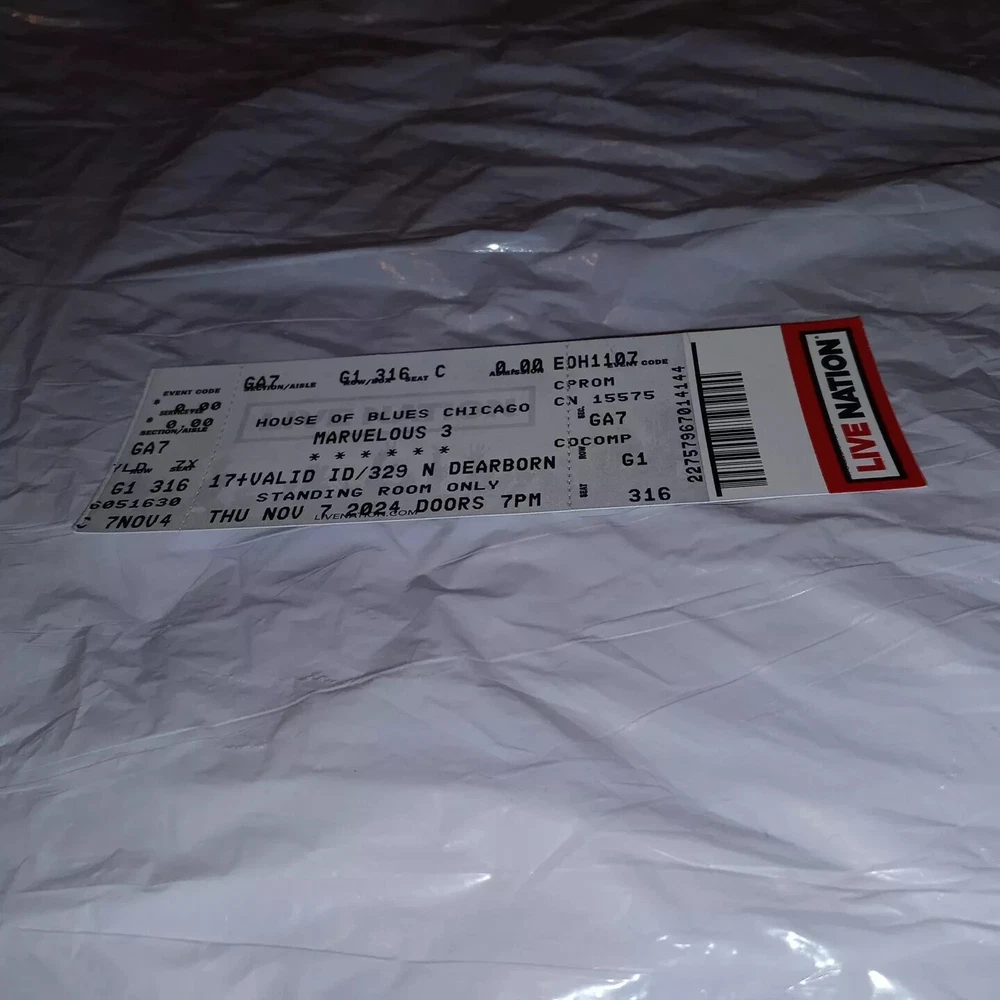 MARVELOUS 3 & LIT Chicago House Of Blues 11/7/2024 2024 Tour RARE Concert Ticket