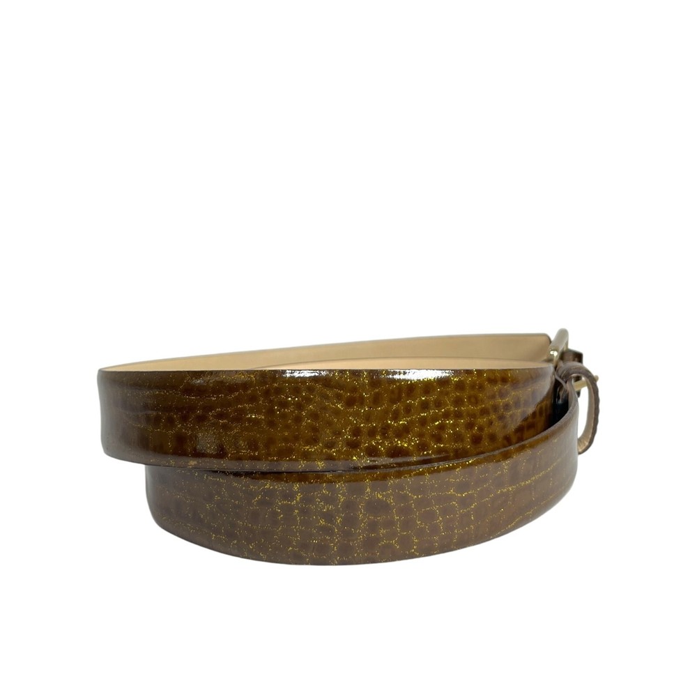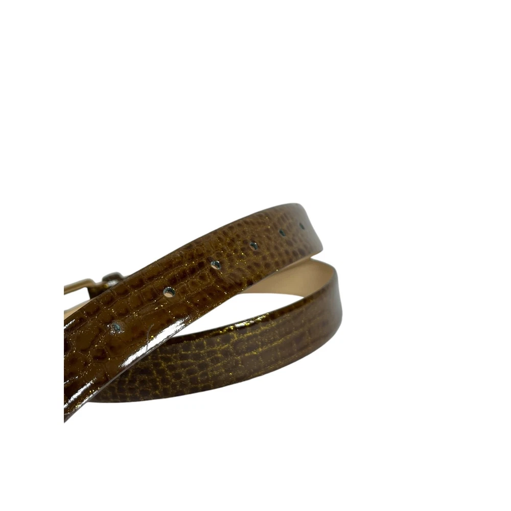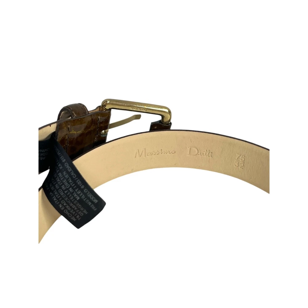 In excellent pre owned condition with no signs of damage. Vintage Massimo Dutti Genuine Italian Leather Belt in Brown/gold shimmer croc print Crocodile/alligator print Genuine Italian leather Hand crafted Shimmer throughout 6 adjustable holes Buckle with hook closure Made with genuine Italian leather/metal Made in Italy Womens 75cm/32in Width of belt: 1.25" Full length of leather: 39" Full length of belt: 41" #vintage #vintagebelt #leatherbelt #italianleatherbelt #crocodileleatherbelt #leatherbelt #italianleather #crocodile #alligator