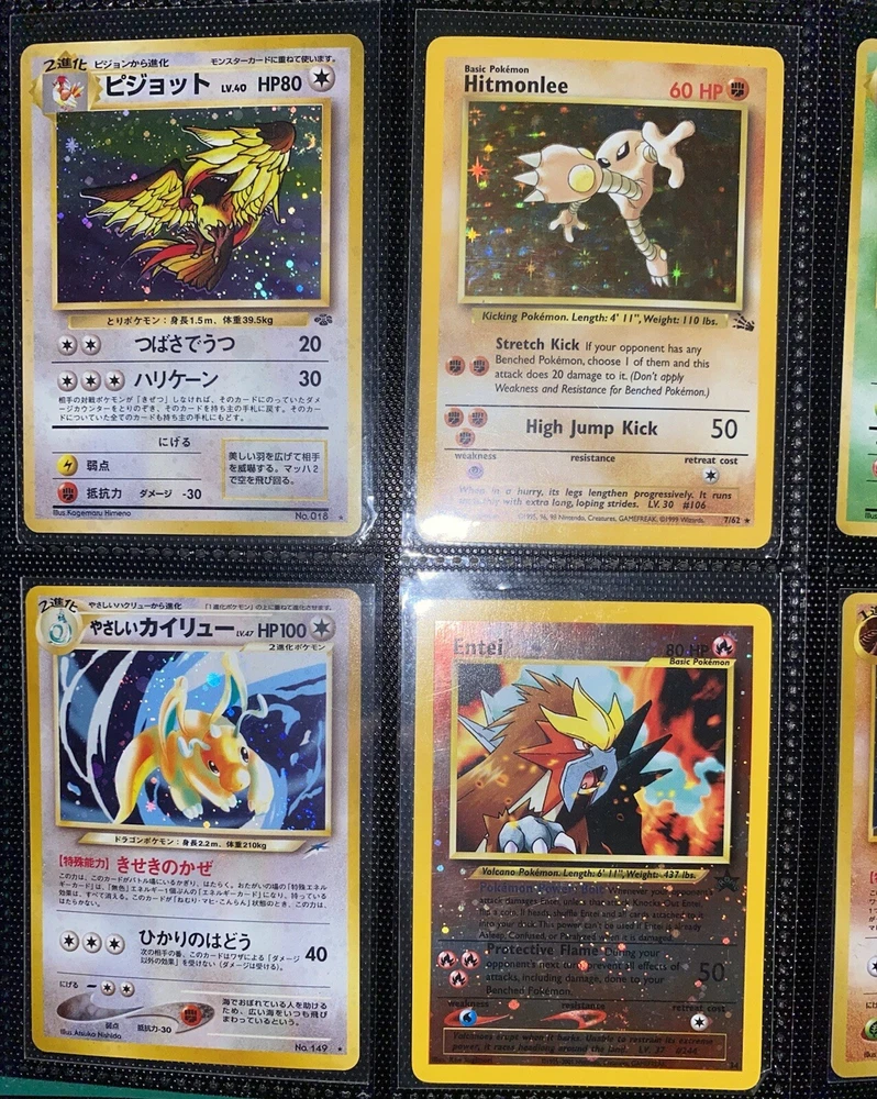 This offering is a massive lot of 360 vintage Pokémon cards, featuring a variety of sets including Base Set 1st Editions and more. The collection includes cards in Standard and Japanese sizes. Among the characters featured are Zapdos, Charmander, Dragonite, Venusuar and more. Manufactured in 1999 by Wizards of the Coast and Nintendo in the United States, these cards have a vintage appeal and include unique features like being Shadowless or 1st edition and having a Holo finish. Ideal for Pokémon TCG enthusiasts and collectors, this lot offers a diverse selection of classic cards from the early days of the game. 360 card binder plus 4 graded cards Graded cards - PSA 6 Base Set Ninetails PSA 4 Japanese Fossil Dragonite w/ a light holo bleed PSA 5 Japanese Gym Series Erika’s Venusuar Holo PSA 9 Pikachu Neo Genesis Some of the binder rares - 1st Ed Jungle Vaporeon 1st Ed Fossil Zapdos with missing holo error Prerelease Dark Gyarados Light Dragonite with a Swirl Rockets Zapdos and Base Set Zapdos Fossil Haunter with a Swirl and Aerodactyl Holo Erikas Vileplume Brock’s Ninetails and Rhydon Neo Meganium, Feraligatr & Typhlosion And many other big cards. Non Holo cards range from Base set to Neo and a few 1st editions are included. There are a few duplicates among the non holos. Message me with any questions. Happy Hunting