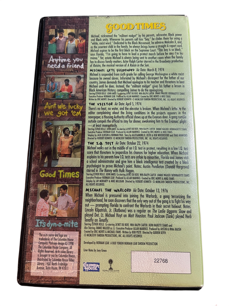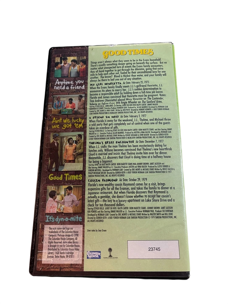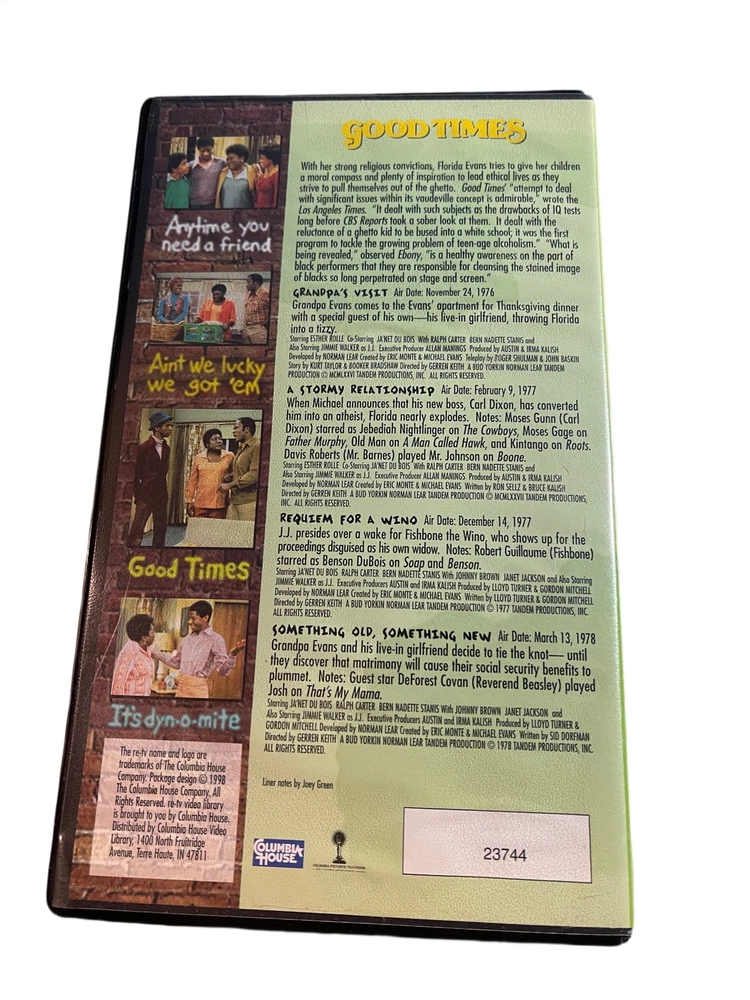 MASSIVE VINTAGE COLLECTION: 15 VHS Tapes GOOD TIMES- The Collector's Edition 25z MASSIVE VINTAGE COLLECTION: 15 VHS Tapes GOOD TIMES- The Collector's Edition 25z MASSIVE VTG COLLECTION: 15 VHS Tapes GOOD TIMES - The Collector's Edition Released in 1998, these tapes are over 28 years old. The tapes have been kept inside the closed clamshell cases, so the tapes are in pristine condition. The cases themselves have a little shelf wear. Please keep in mind that these tapes should be handled with care when played as they are OVER 28 YEARS old. Grab this collection while you can, this is a pretty impressive collection we were lucky enough to come across. Chasing after each of these tapes individually would be quite an undertaking. SEE photo's #4-18 for ALL the episodes you will be getting and a description of each! Wow, such memories, a REAL BLAST from the PAST! These photos are ALL of the exact back side of each VHS case that you will be receiving. A bit about the history of these tapes: Here is the background and history. 1. The Original TV Series (1974–1979) Good Times aired on CBS from 1974 to 1979 and ran for 6 seasons with 133 episodes . It was created by Eric Monte and Mike Evans and developed by legendary producer Norman Lear . The show followed the Evans family living in a Chicago housing project and was notable for addressing serious social issues—poverty, racism, unemployment—while still being a comedy. It starred: Esther Rolle John Amos Jimmie Walker Ralph Carter Bern Nadette Stanis The character J.J. Evans and his catchphrase “Dy-no-mite!” became one of the most famous elements of the show. 2. Why the “Collector’s Edition” VHS Was Created Before streaming or full-season DVD sets existed, TV shows were rarely released complete on home video. In the late 1990s , the mail-order company Columbia House produced “Collector’s Edition” VHS tapes for classic TV series. These were typically: Curated episode collections Sold through direct-mail subscription catalogs Packaged in clamshell collector cases Marketed to nostalgic fans and collectors This same approach was used for several shows in that era. 3. Release of Good Times – The Collector’s Edition The Good Times Collector’s Edition VHS sets were released around 1998 . Typical features: Each tape contained about 4 episodes Episodes were grouped by themes (examples: “Out of the Ghetto,” “Florida Storms”) Runtime around 100 minutes per tape Clamshell packaging marketed as a collectible series . Because the show originally had 133 episodes , the VHS line was meant as a “best-of” selection rather than a complete series.