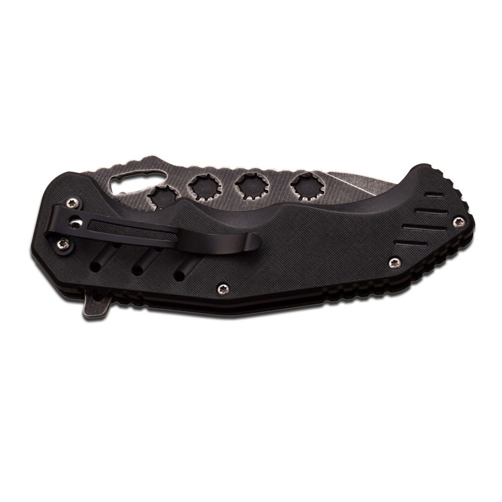 The MASTER USA Bulletproof Tanto Tactical Blade is a high-quality pocketknife with a 2.76 - 4 inch stainless steel blade, featuring a sleek black color and a combination edge. The manual opening mechanism and liner lock ensure secure and reliable use. With its Tanto blade type and compact design, this new product from Master USA is perfect for everyday carry and tactical applications. Made with durable stainless steel handle material, this EDC knife is a must-have for collectors and outdoor enthusiasts.