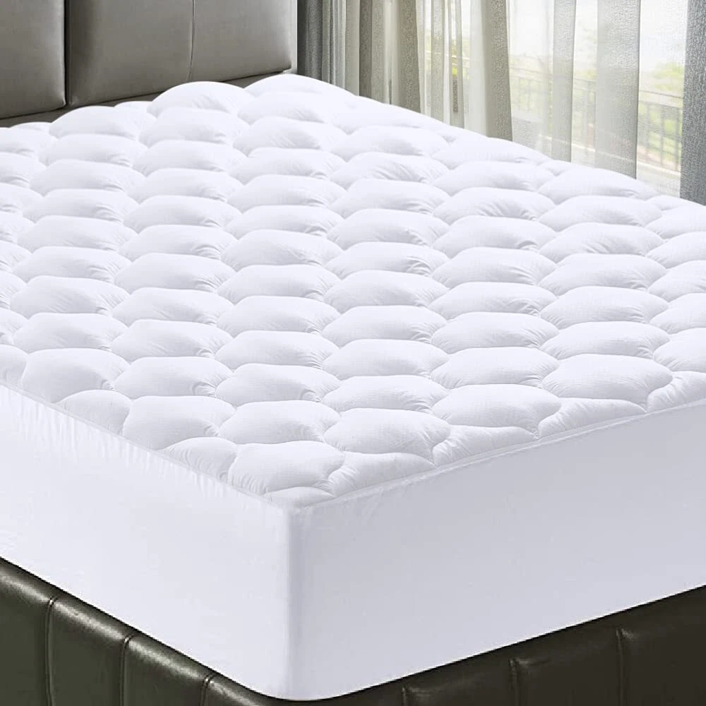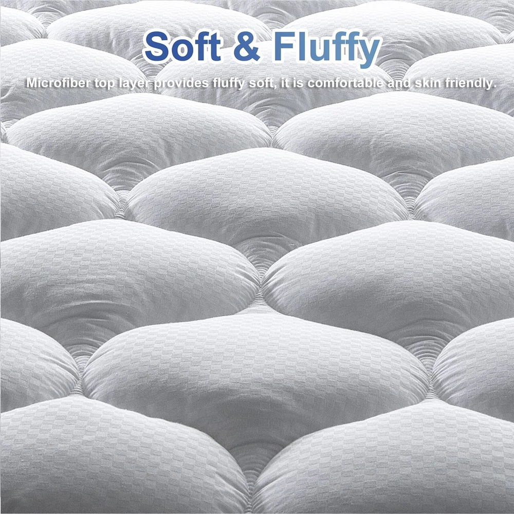 Fluffy & Soft Mattress Pad: Queen Mattress Pad (60''x80'') with microfiber top layer and the new designed microfiber filling (50% 3D+50% 6D) provide softness and extra resilience, that giving you cozy feel and most relaxing sleep. Cooling Breathable Mattress Pad: The microfiber top makes the surface feel cooling and breathable, the microfiber filling (50% 3D+50% 6D) increases circulation and breathability. It will provide you a cozy and breathable sleeping environment, make you feel comfortable without extra heat and sweat. Quilted Fitted Mattress Pad: Compared to the normal diamond quilting seam, this quilted fitted pad with new shape is more supportive, soft and durability. Rebound well after washing, quick drying and wrinkle resistant features help save your time and your electric bill. Mattress Pad with Deep Pocket: The 360° fabric pocket sides can be easily stretched to fit mattresses up to 8" -21" thick. It will hold tight on all mattress types, whether it's a regular mattress, a waterbed, or memory. It will never slide no matter how you twist and turn in your bed. Machine Washable Mattress Pad: Machine washable, under gentle cycle with cold water, tumble dry low. Please DO NOT iron, DO NOT dry clean.