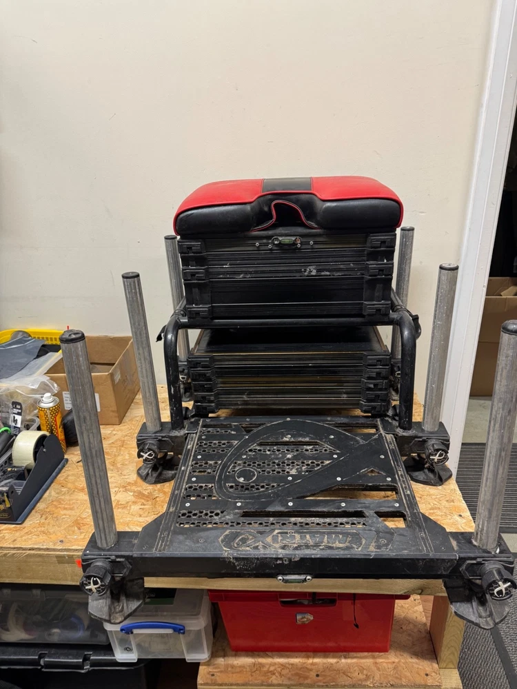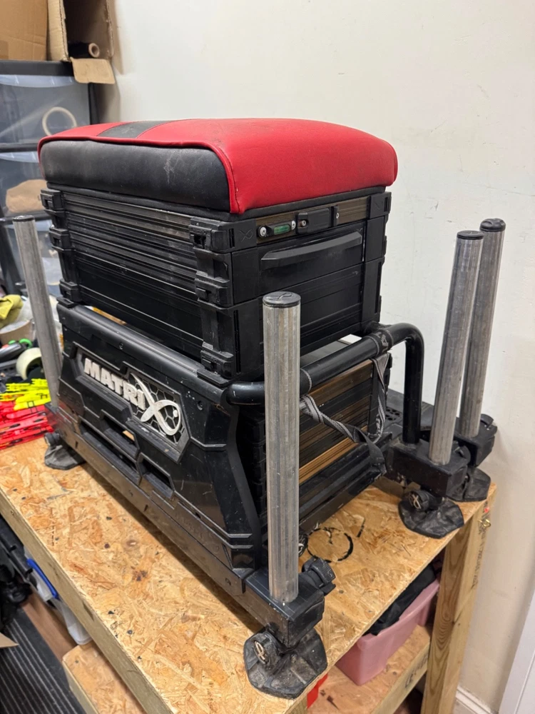 MATRIX S36 SUPER BOX, BLACK EDITION IN FULL WORKING ORDER A SUPERB SEAT BOX WITH SLIDE OUT FOOTPLATE AND 36mm LEG SYSTEM THE BOX FEATURES A NEW CUSTOM MADE CUSHION, UNDER SEAT WINDER TRAY, LARGE SIDE DRAW WITH ORGANISERS AND ORIGINAL CARRY STRAP. THE BOX ALSO COMES WITH A SLIDE OUT STACKER SYSTEM, THIS CONSISTS OF FOUR WINDER TRAYS. DUST AND MUD MARKS, BUT AN OTHERWISE SUPERB BOX GIBBO’S TACKLE IS AN INDEPENDENT BAIT AND TACKLE SHOP BASED IN DIDCOT, OXFORDSHIRE, SELLING BOTH PRE-LOVED AND NEW FISHING TACKLE ITEMS. I HAVE BEEN AN EBAY TRADER FOR OVER 10 YEARS, ALL MY ITEMS ARE FULLY CHECKED BEFORE LISTING, WITH ACCURATE DESCRIPTIONS. ALL ITEMS ARE WELL PACKAGED AND ALL PRICES, INCLUDE FREE UK SHIPPING. BE SURE TO CHECK OUT MY EBAY SHOP, FOLLOW FOR REGULAR UPDATES AND CHECK OUT MY SOCIAL MEDIA.
