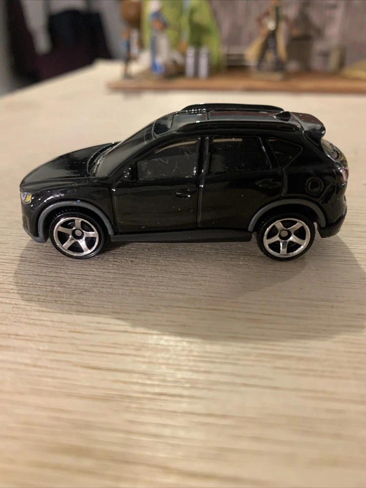 The Matchbox Mazda CX-5 in black is a diecast toy car part of Matchbox's vintage manufacture series. This collectible toy car represents a Mazda vehicle in the form of a miniature car model. With the iconic Matchbox brand known for producing high-quality diecast vehicles, this Mazda CX-5 toy is a mint condition replica that is sure to be a valuable addition to any toy car collection.
