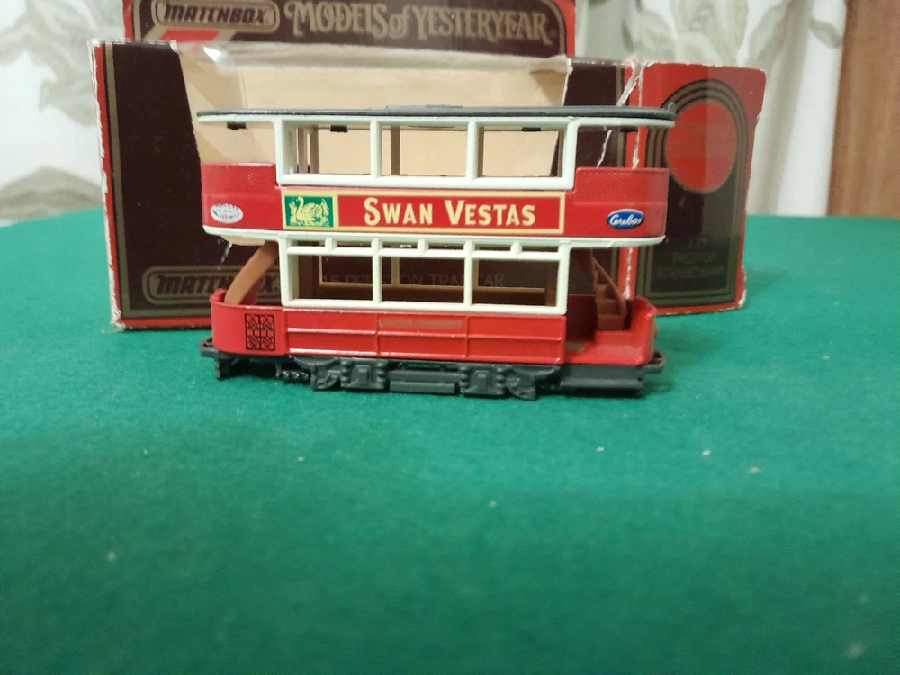 Seller Notes:“TRAM IN GOOD CONDITION BOX WORN.”Year of Manufacture:1986Series:Matchbox Models of YesteryearVehicle Make:PRESTON TRAMCARBrand:MatchboxSigned:NoScale:1:87Vehicle Type:TRAMColour:RED AND CREAM