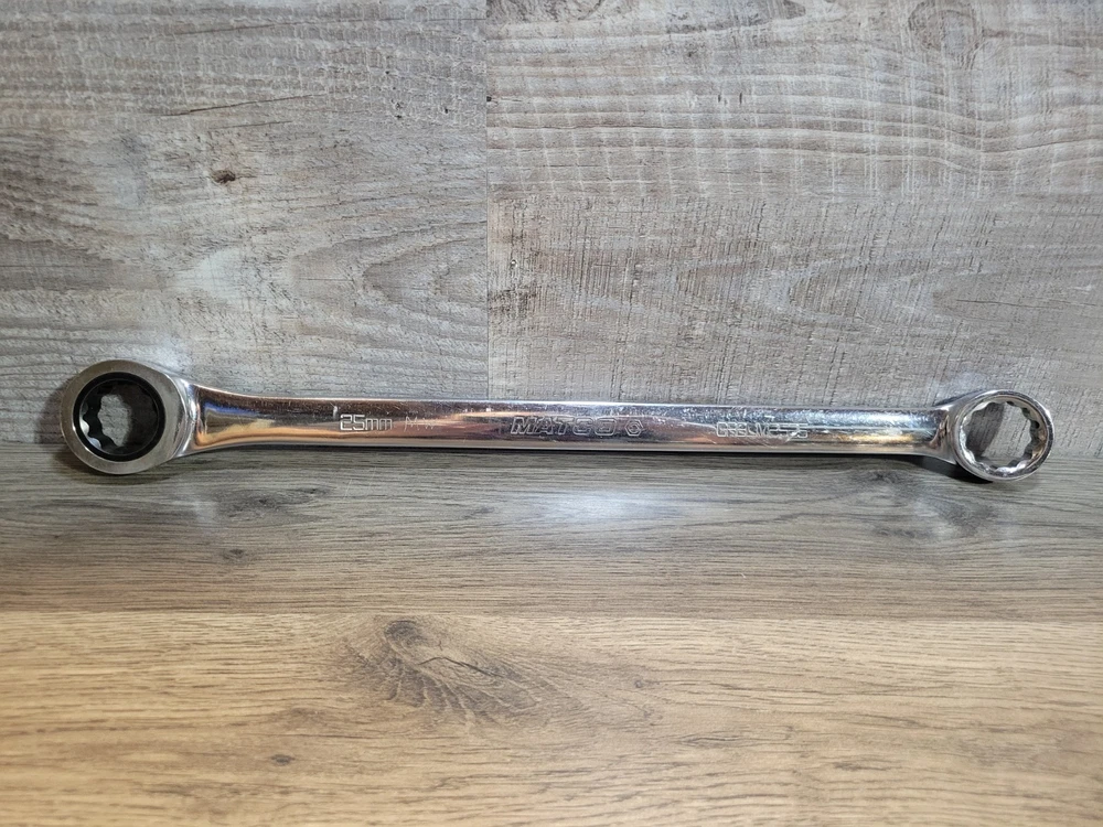 MATCO Automotive 25mm 12 Point Double Box Ratcheting Ratchet Wrench GRBLM2525. In used condition with some minor wear, see pictures.