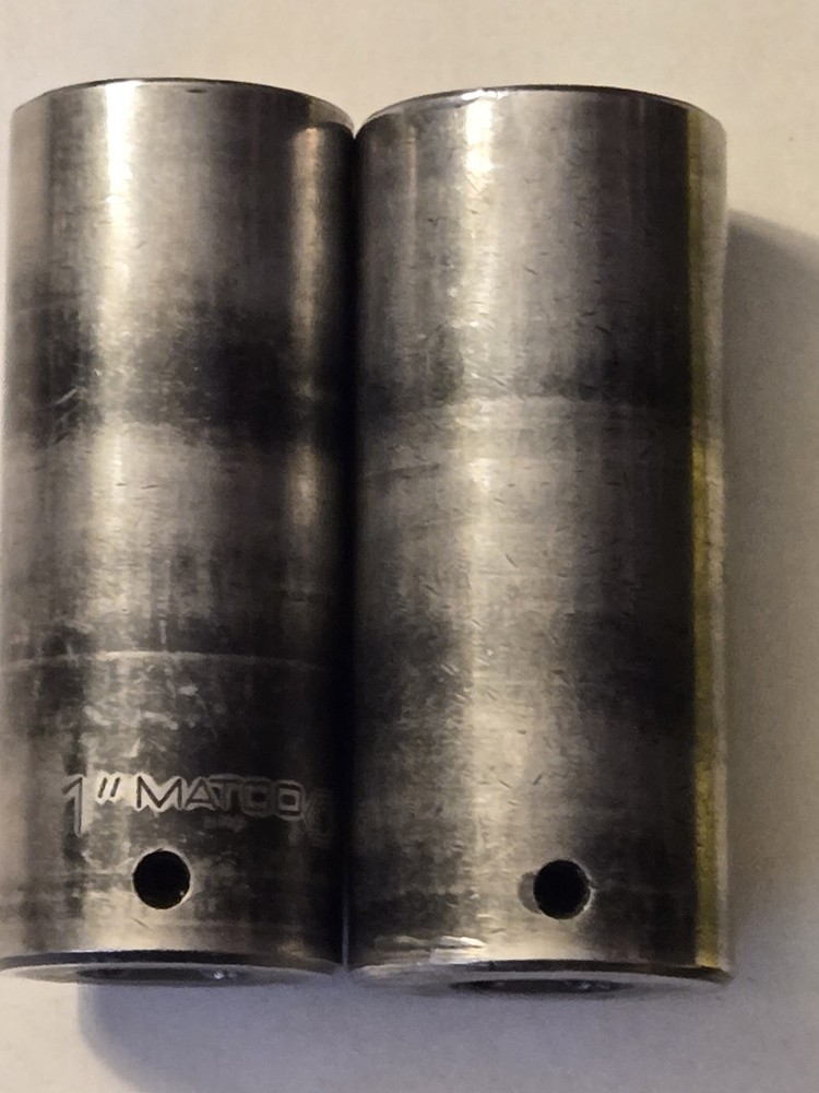 Crafted for durability and precision, these MATCO Tools 1/2" Drive 6 Point Impact Sockets are indispensable for any professional or DIY enthusiast. The set includes one 1-1/16" and 1" socket, both designed to meet the rigorous standards of the SAE system of measurement. The deep configuration ensures a proper fit and reduces the risk of rounding fasteners. With a black oxide finish, these sockets resist corrosion and provide a sleek, professional appearance. The single-item set is composed of high-quality materials, ensuring longevity and reliability. The sockets fit a 1/2" drive and are clearly marked with the Matco part numbers CDP346A and CDP326 for easy identification. PLEASE SEE PICTURES No owner engravings are in very good condition.