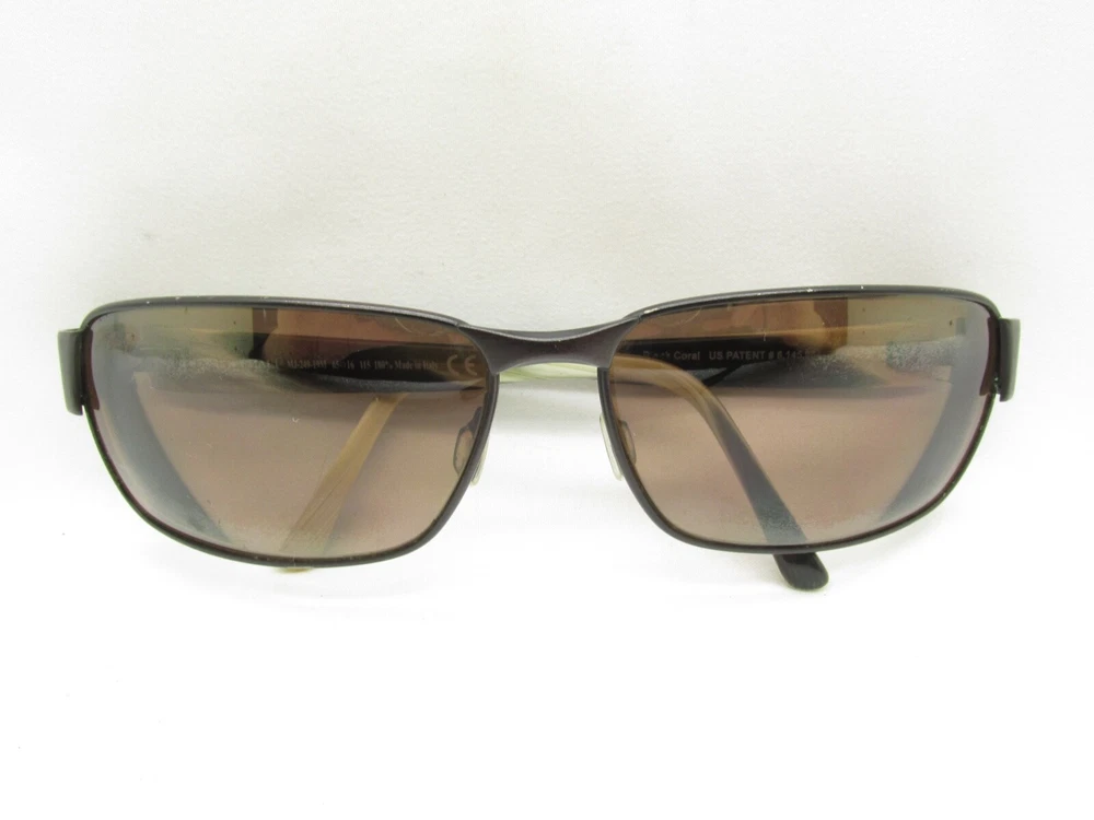 Bridge Width: 16 mm Type: Eyeglasses Vertical: 38 mm Pattern: Striped Department: Unisex Adults Features: Full Rim, Rectangular Frame Material: Metal, Plastic Temple Length: 115 MM Seller Notes: “GOOD” Frame Color: Brown Lens Socket Width: 65 mm Brand: Maui Jim Model: BLACK CORAL Style: Wrap Country/Region of Manufacture: Italy