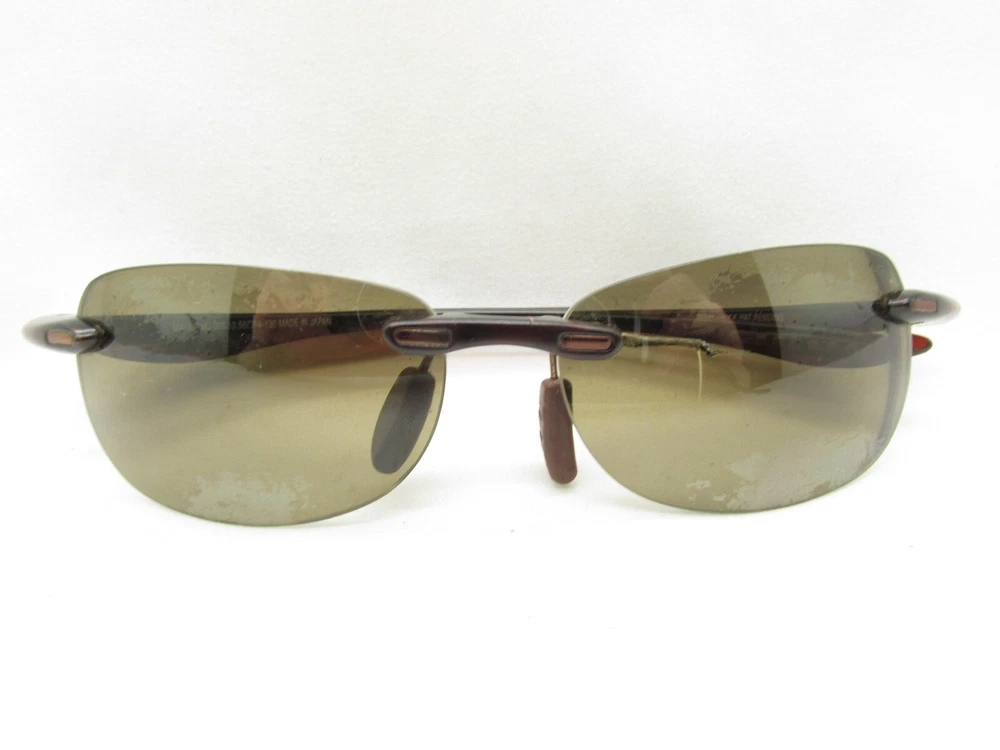 Department: Unisex Adults Seller Notes: “VERY GOOD” Type: Eyeglasses Model: SANDY BEACH Country/Region of Manufacture: Japan Lens Socket Width: 56 mm Frame Material: Plastic Style: Wrap Vertical: 36 mm Bridge Width: 14 mm Frame Color: Brown Features: Rimless Brand: Maui Jim Temple Length: 130 MM