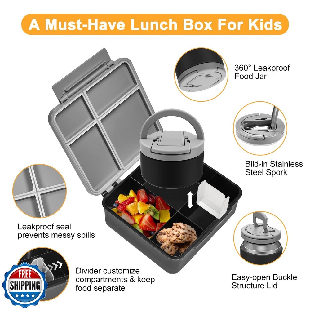 MAXSO Bento Lunch Box Set for Kids with 8 oz Soup Thermo, Leakproof Hot Food Container with 4 Compartments, Insulated Food Jar for Toddler Daycare Boys Girls School - Black Features Kids Lunch Bento Boxe Set - 100% Leakproof: Each compartment is individually sealed to prevent mess leakage. Kids-friendly latch on the box and buckle structure lid of 8oz soup thermo are designed for little hands to open and close easily. Perfect gift for kids & toddler pack lunch to daycare, nursery, preschool, kindergarten, elementary school, picnic or camping 8oz Vacuum Insulated Soup Thermo: Food grade 304 stainless steel and double wall vacuum insulated technology, our soup thermo can keep food warm or cold for up to 5 hours. The build-in stainless steel spork carry and eat easily for kids Food Grade Material: This bento lunch box set is entirely made of food grade materials, which is durable and BPA free, providing the highest safe level to protect kids’ health. 4 compartments seals well to effectively prevent leakage and smell-mixing Easy to Clean: This kids bento box is microwave safe & dishwasher safe for your convenience. The rubber sealing ring of lunch boxes and the lid of insulated food jar are both detachable to clean. The wide mouth thermo container is also convenient to clean both by hand or dishwasher Warm Tips: In order to keep food hot or cold longer, we suggest to preheating or precooling with hot wateror icy water for 5~10 minutes before adding food or soup. We focus on kid's food safety and committed to provide safe and excellent products for kids. Any questions, please contact us immediately Shipping Free & Fast Shipping: We offer free shipping to most of the USA with a normal delivery time of 3-7 days. However, due to the current situation, additional delivery time (up to 3 weeks) may be required for some items. Alternative Carriers: We may use alternative carriers (e.g., USPS, FedEx, UPS) to ensure your package arrives safely and on time. Due to the use of multiple carriers, we are unable to provide a tracking number automatically. Handling Time: Orders are processed and shipped within 1-2 business days of receiving cleared payment. Shipping Restrictions: Shipping to Alaska, Hawaii, Puerto Rico, Guam, and other US territories may incur shipping charges or delivery restrictions. Please contact us before ordering, or your order can be refunded/cancelled. State Restrictions: Certain items may not be shipped to California due to state regulations. Contact for Tracking Updates: If you require tracking updates or have any concerns about the delivery of your order, please feel free to contact us, and we will be happy to assist you. Return Policy 30-Day Hassle-Free Returns: If you are not completely satisfied with your purchase, you can return the item for free within 30 days of receiving it for a full refund or exchange. Easy Return Process: Contact us, and we will provide you with a prepaid return shipping label and detailed instructions. No Restocking Fee: There are no restocking fees for returns. However, the buyer is responsible for return shipping costs if the return is not due to a seller"s error. Refund Processing: Refunds will be processed within 1 business day of receiving the returned item in its original condition. Feedback Your feedback is extremely important to us. We strive to provide the best products and customer service possible. If you are satisfied with your purchase, please take a moment to leave us a positive review. If you have any concerns or issues with your order, please contact us before leaving negative feedback. We are committed to resolving any problems and ensuring your satisfaction. Contact Us If you have any questions or concerns, please feel free to reach out to our customer support team. You can contact us through the eBay messaging system. We are available Monday to Friday, 9:00 am to 5:00 pm EST, and we will do our best to respond to your inquiry within 24 hours. Thank you for supporting our small family business!