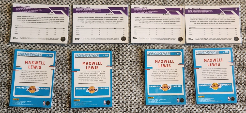 MAXWELL LEWIS 8-Card Rookie Lot 2024 Topps Chrome Blue Parallel Base Donruss Optic Lakers Basketball Collection