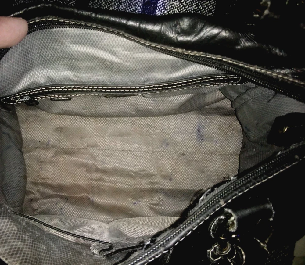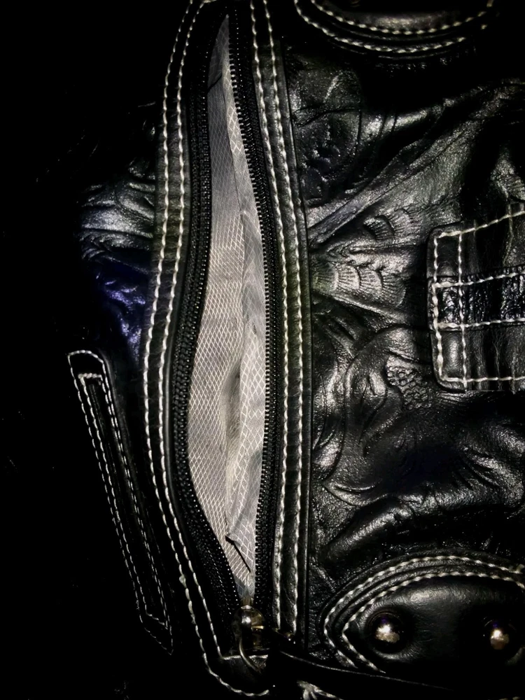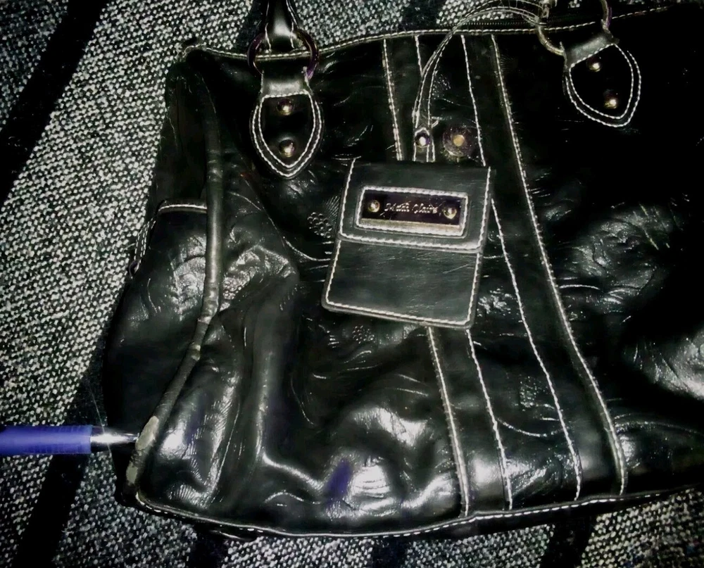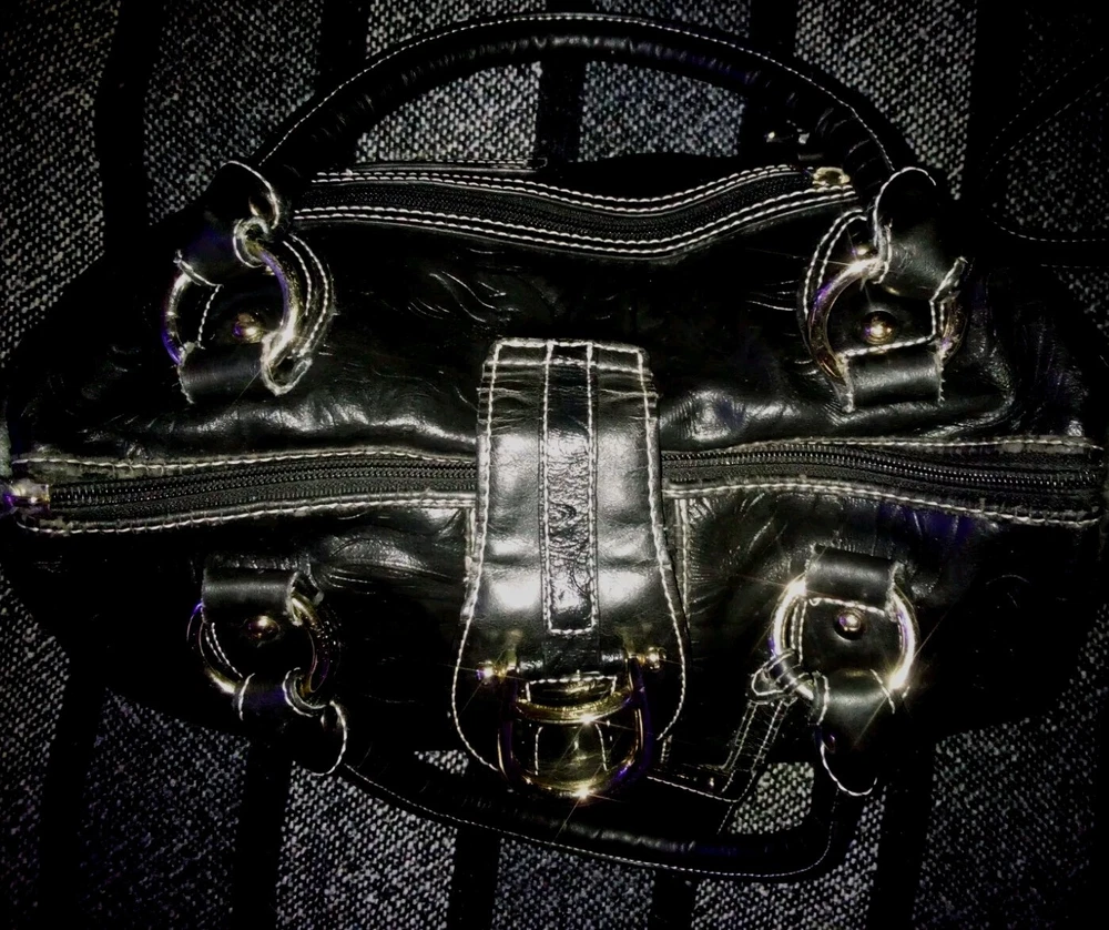 Elevate your style with the MC Madi Claire Crossbody Handbag, a sophisticated accessory that marries functionality with high-end fashion. Crafted from premium black leather and stamped with a chic floral pattern, this medium-sized bag boasts a trapezoid shape that's as versatile as it is trendy. It's fully equipped with a variety of features including a removable pouch, adjustable strap, and multiple pockets to keep your essentials organized and within reach. The handbag's interior is lined with silver satin, providing a luxe touch to your personal items. The gold hardware adds a touch of elegance, while the black leather handle and strap ensure comfort and durability. Whether you're headed to the office, attending a cocktail party, or traveling, this bag is designed to complement any occasion. It's a piece that's both timeless and contemporary, making it a must-have for any fashion-conscious individual.