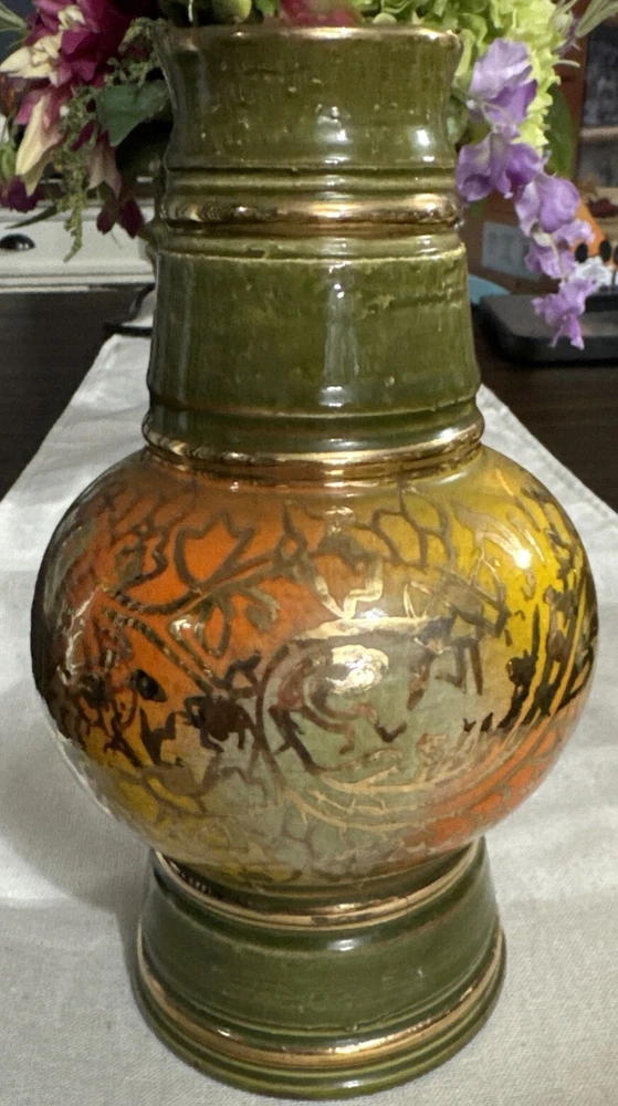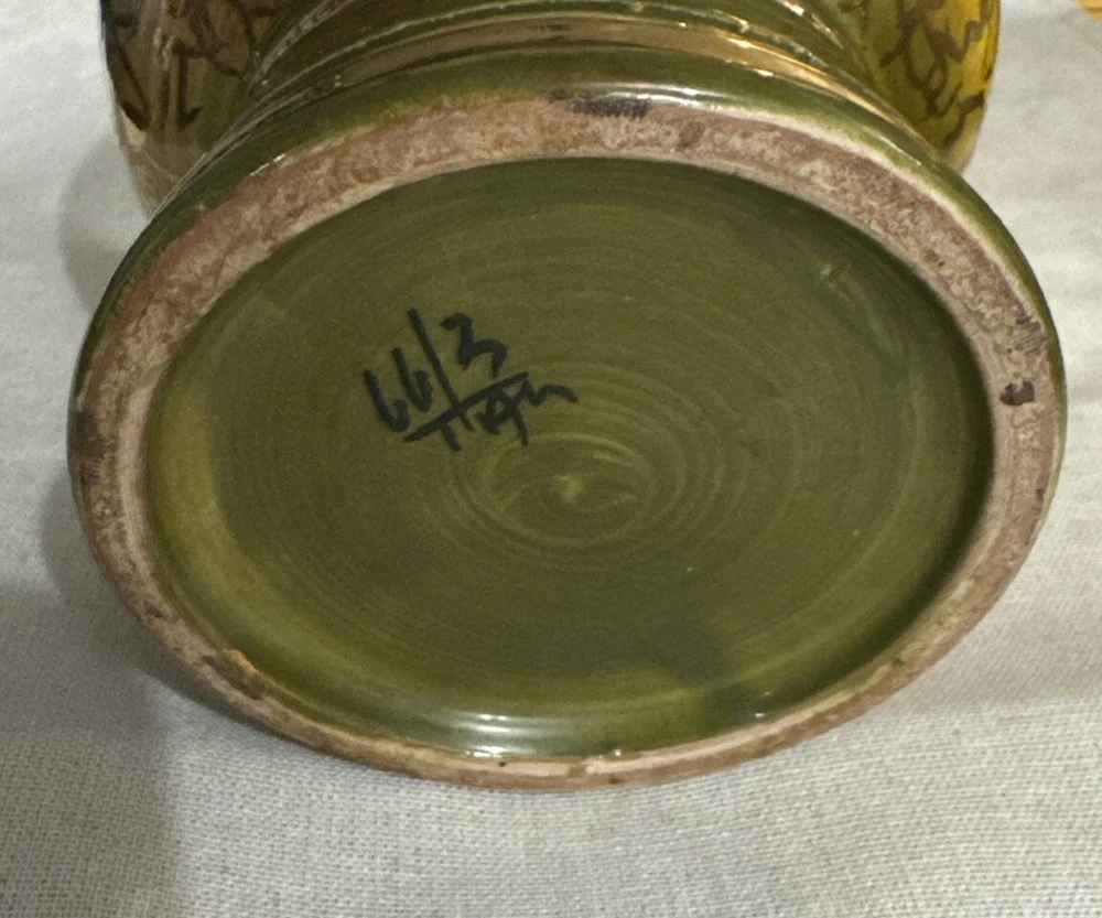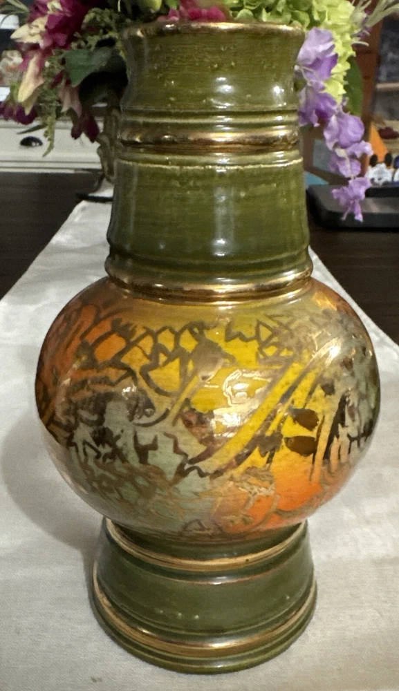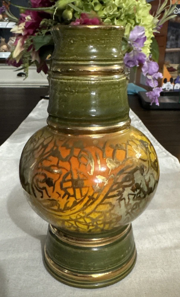 This stunning mid-century modern vase is a true gem for any collector. The beautiful green, yellow, and orange glossy finish is hand-painted with intricate details, making it a one-of-a-kind decorative piece. Measuring 4.5 inches in length and width, and standing at 8 inches tall, this vase is perfect for all occasions and adds a touch of vintage charm to any room. Crafted by Bitossi in Italy in the 1960s, this vase is an original piece and features a handmade design with a painted backstamp. The vase is made of high-quality ceramic and is perfect for displaying flowers or as a standalone decorative item. Care instructions include hand wash only, and the vase comes with a set that includes one item. Add this unique and beautiful vase to your collection today!