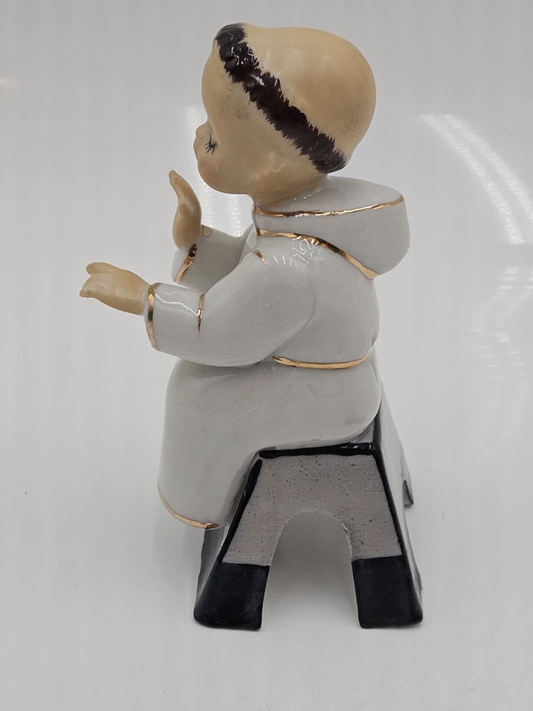 Size: Small Style: 1950s Department: Adults Type: Figurine Color: White Occasion: All Occasions Item Length: 2 in Room: Any Room Item Height: 5 in Brand: Unbranded Subject: monk Finish: Glossy Number in Pack: 1 Material: Porcelain Country/Region of Manufacture: Japan Original/Reproduction: Original