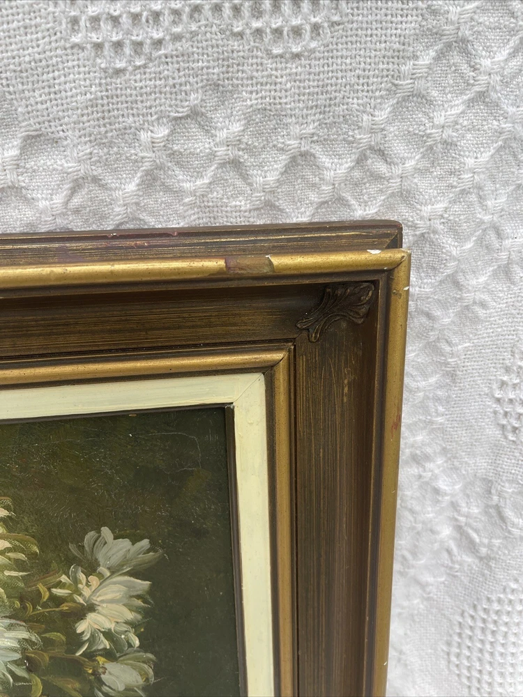 Please see photos. There is some peeling/damage to the paint. Lovely painting.