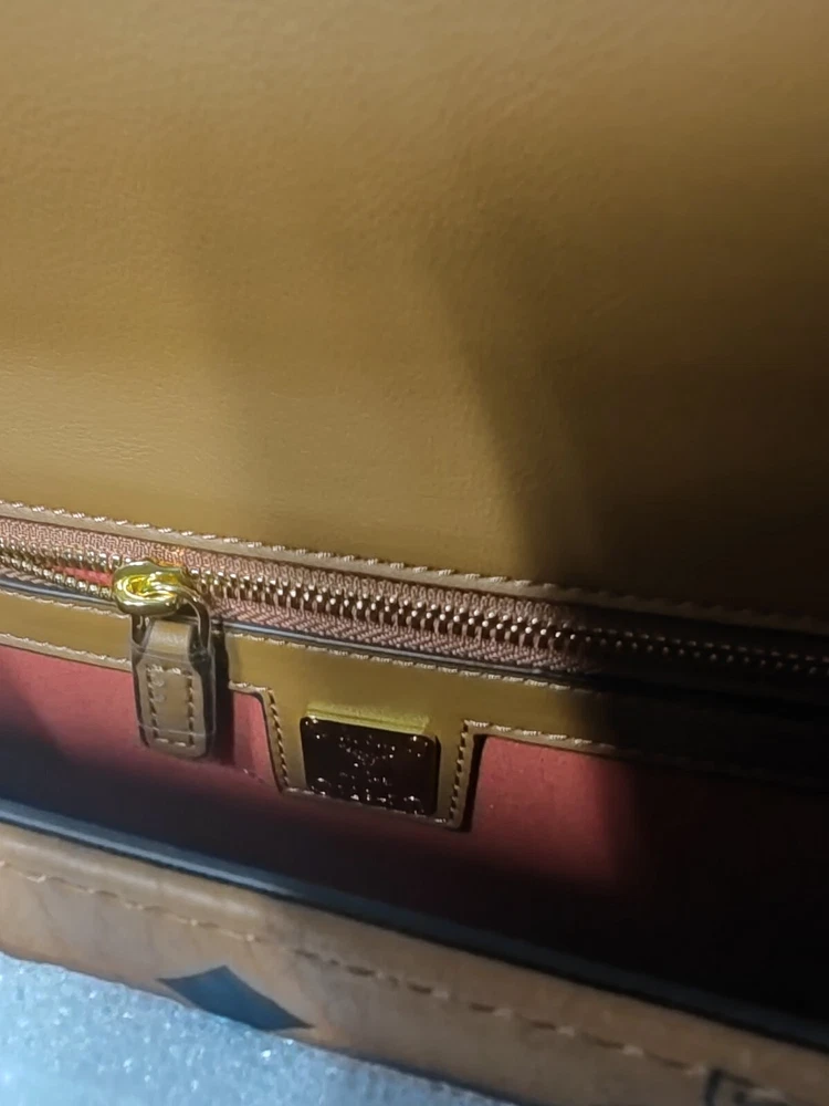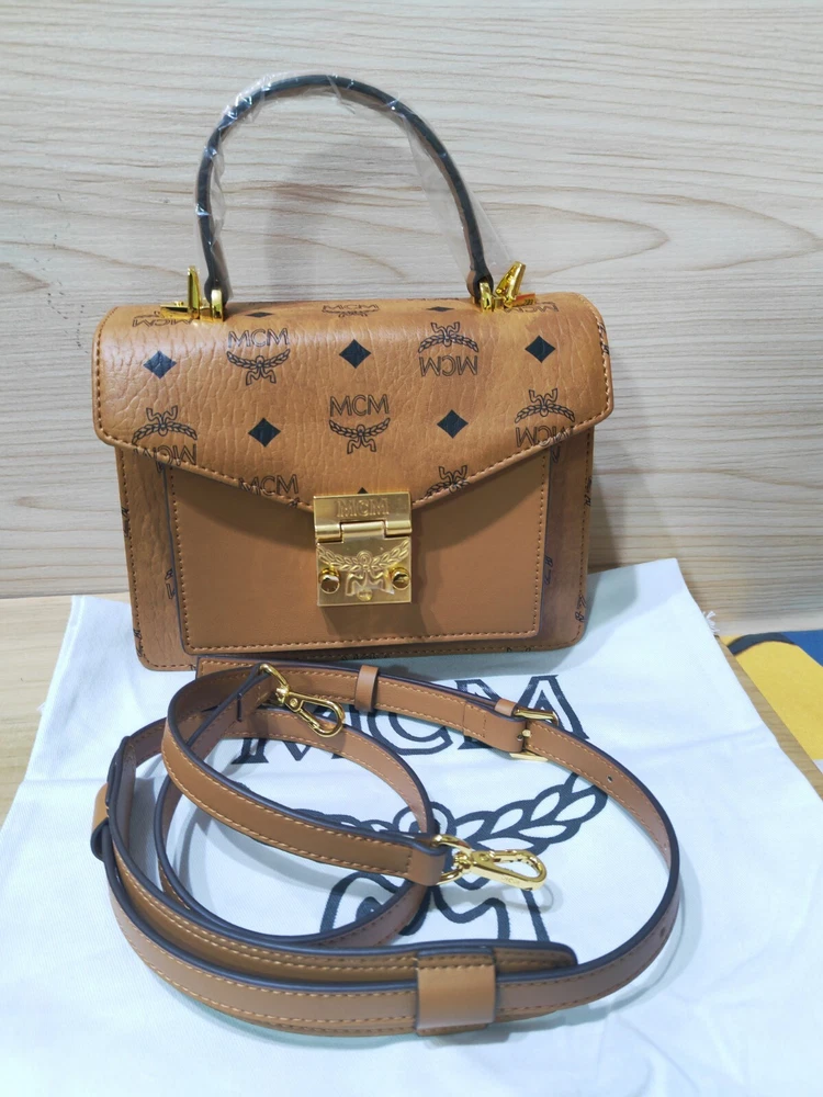 Size: 21 * 16.5 * 8cm Closure: Push Laurel Lock Exterior Color: Cognac Brown Exterior Material: Leather Features: Adjustable Strap, Inner Pockets, Outer Pockets Finish: Coated Handle Style: Shoulder Strap Handle/Strap Color: Cognac Brown Handle/Strap Material: Leather Hardware Color: Gold-Tone Hardware Material: 24k Gold-Plated Metal Lining Material: Microfiber