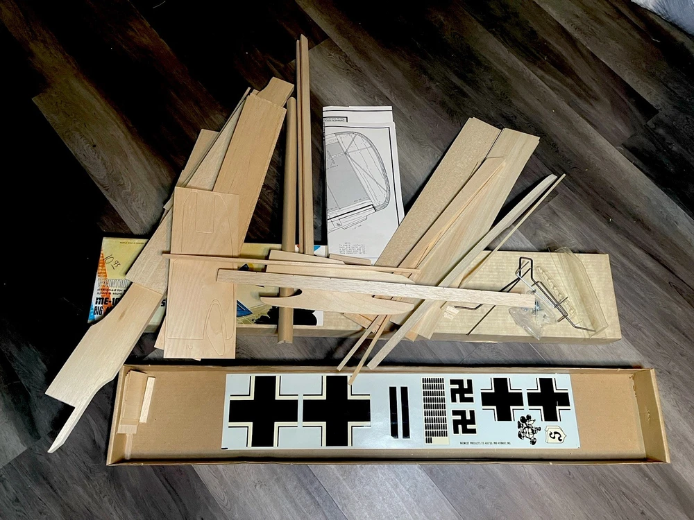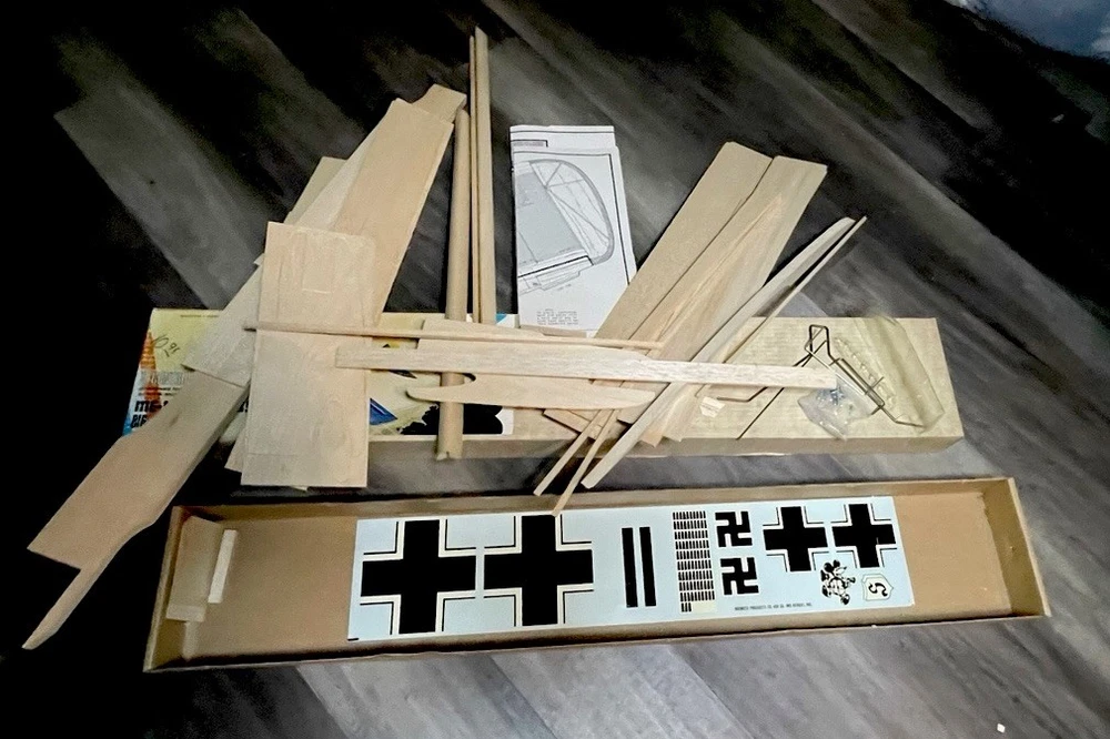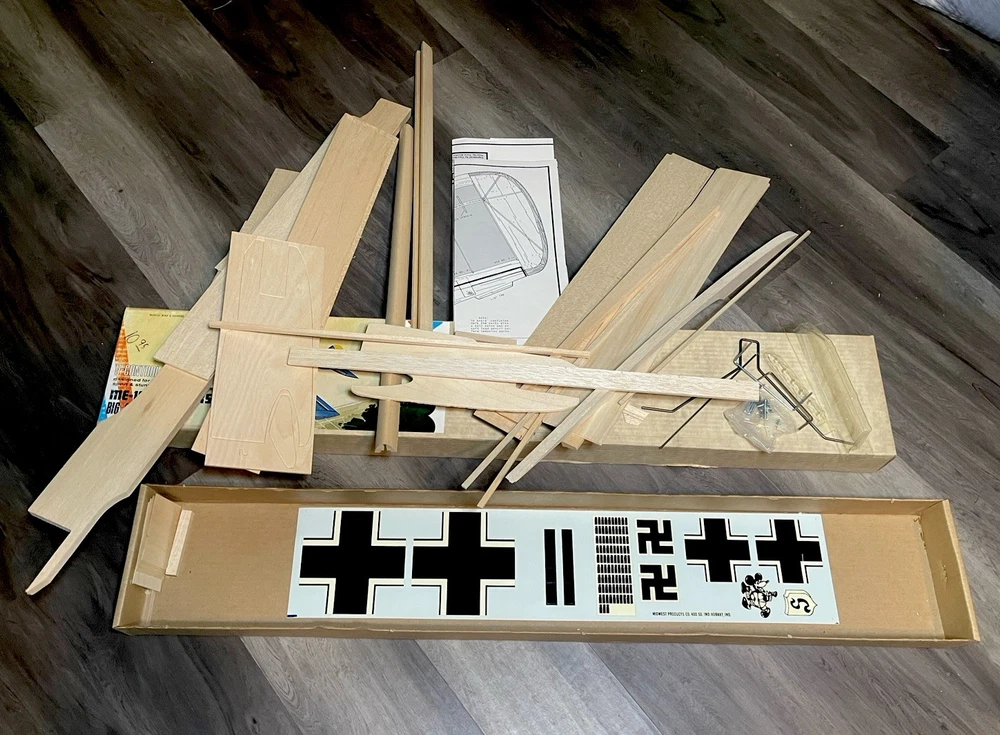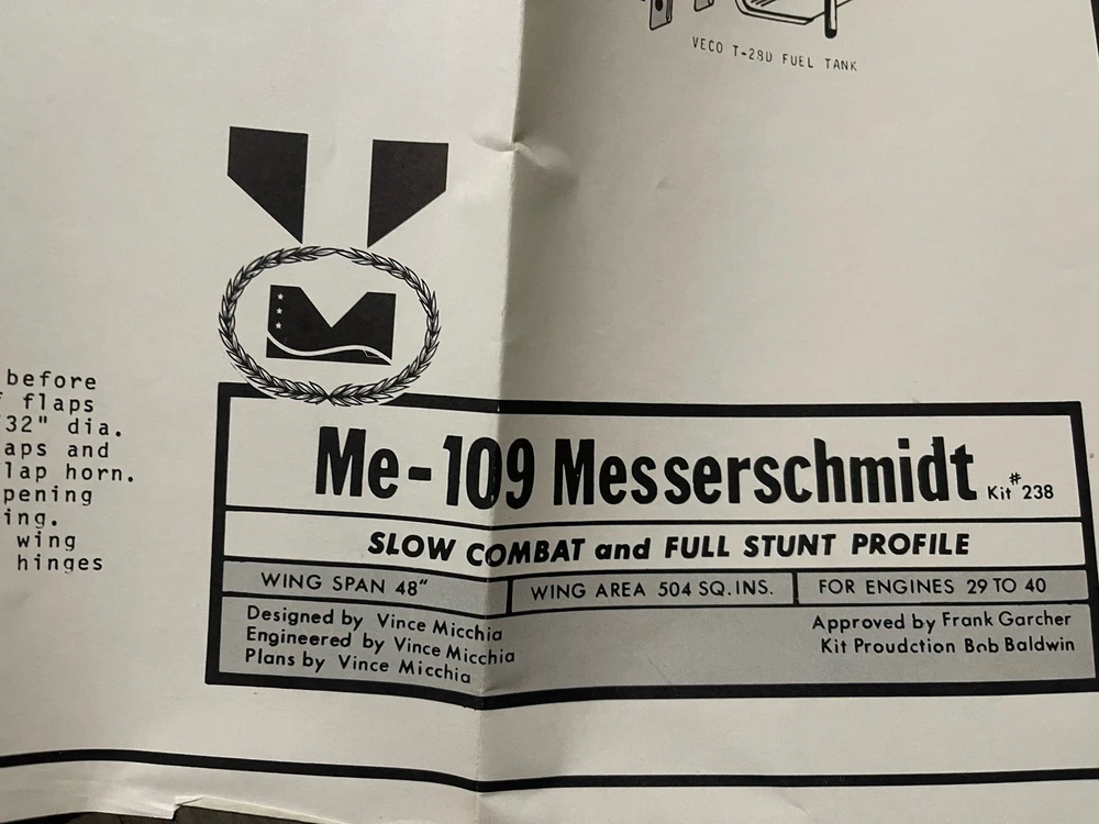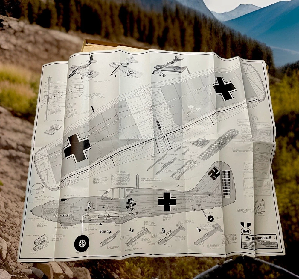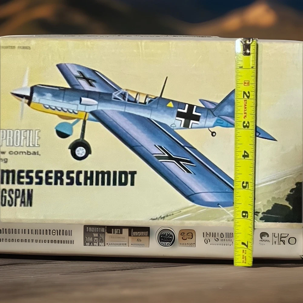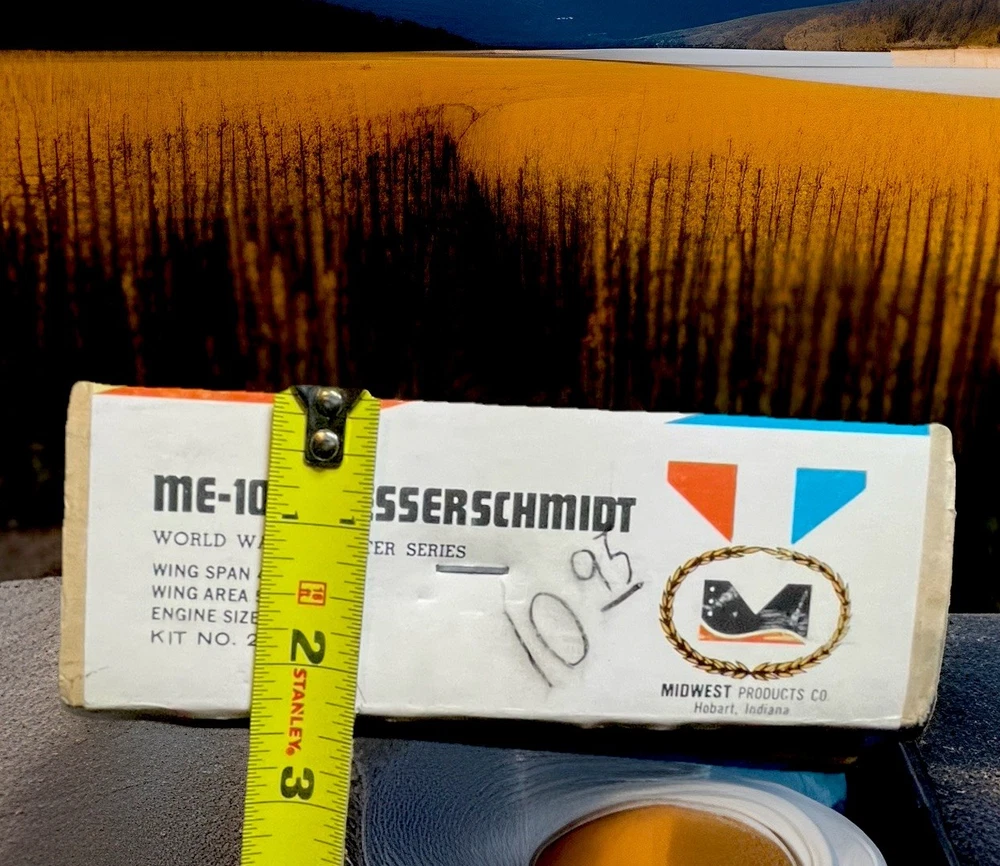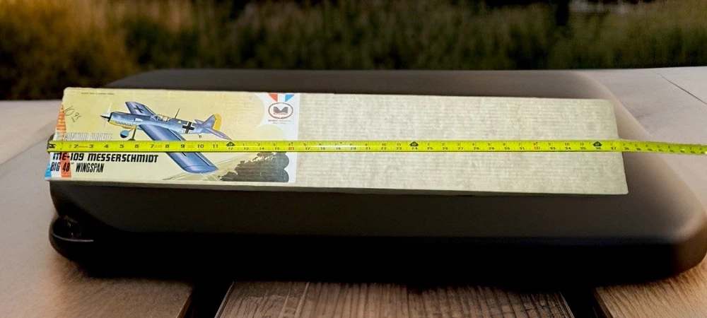 The ME-109 Messerschmitt WITH 48” WINGSPAN WW II Fighter Series airplane kit by Midwest is a vintage model that captures the essence of the iconic German fighter plane. This unassembled kit is crafted from durable plastic and features intricate details that are sure to appeal to aviation enthusiasts and history buffs alike. With the option to customize engines sized 29 to 40, this kit allows for a personalized touch on a piece of military history. Perfect for model builders looking to recreate a piece of World War II aircraft heritage. Please look at pictures closely before buying this vintage item has some aging patina on it which is detailed in the pictures. This is a truly hard to find object for all collectors. this is your chance to own one. Good luck.