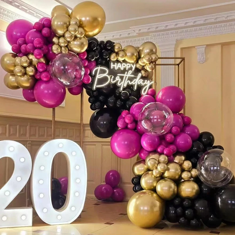 MEBAY Black Red and Gold Balloon Arch Kit, 141Pcs Matte Black Hot Pink Gold Metallic Gold Confetti Balloons for Birthday Wedding Bachelorette Gender Reveal Anniversary MEBAY 141Pcs Matte Black, Red, Gold Metallic, Gold Confetti Balloons Arch Kit 18 " Balloons: Matte Black, Red - 2 for each, total 4pcs 12 " Balloons: Matte Black, Red, Gold Metallic - 10 for each, total 30pcs 12 " Balloons: Gold Confetti - 5 for each, total 5pcs 10 " Balloons: Matte Black, Red, Gold Metallic - 15 for each, total 45pcs 5 " Balloons: Matte Black, Red, Gold Metallic - 19 for each, total 57pcs Balloon Strip x 1 roll Glue Dot x 5 sheets Balloon Ribbon x 2 roll 141 Pcs Balloon Arch Kit: Matte Black, Red, Gold Metallic, Gold Confetti (18"/4pcs, 12"/35pcs, 10"/45pcs, 5"/57pcs); Balloon Strip (1 roll-16ft), Glue Dot (5 sheets-100dot), Balloon Ribbon (2 roll-66ft). Skin-friendly Material: made of natural latex, non-toxic, no foul odor, Not easily oxidized, and kept in the state about 5-7 days. Enjoy the DIY: fill with air or helium, comes with accessories needed to assemble the garland arch, which can effectively make you complete the party decoration easily and funny. Wide Application: perfect for any event, such as graduations, engagements, weddings, anniversaries, baby showers, corporate events, photo shoots and so on. Attention & Warning: Please DO NOT overinflate the balloons, and avoid sunburn, overheat, pointed object and excessive friction. Please kindly note that it's normal for 1-3 out of every 100 pcs to hole or be popped due to vacuum packaging. Shipping from the USA All of our products are shipped from the USA, ensuring quick delivery to your destination. Payment We offer the following payment methods: PayPal, credit card, bank transfer, and eBay's secure payment system. Free Shipping & Free Returns Shipping within the USA is FREE. Additionally, any return is absolutely free for you. Risk-Free Purchase You have the option to return an item within 30 days without any justification. We cover the return shipping costs! Fast Shipping We ship immediately upon receipt of payment. Generally, the package is delivered within 2-3 days in the USA. If it takes longer, we will contact you. Quality and Costs Made in Europe, USA, China No customs fees or additional charges Total satisfaction guarantee Invoice with declared VAT available upon request in .pdf format Feedback Your feedback is very important to us. After you pay for your purchase, you will automatically receive positive feedback from us.