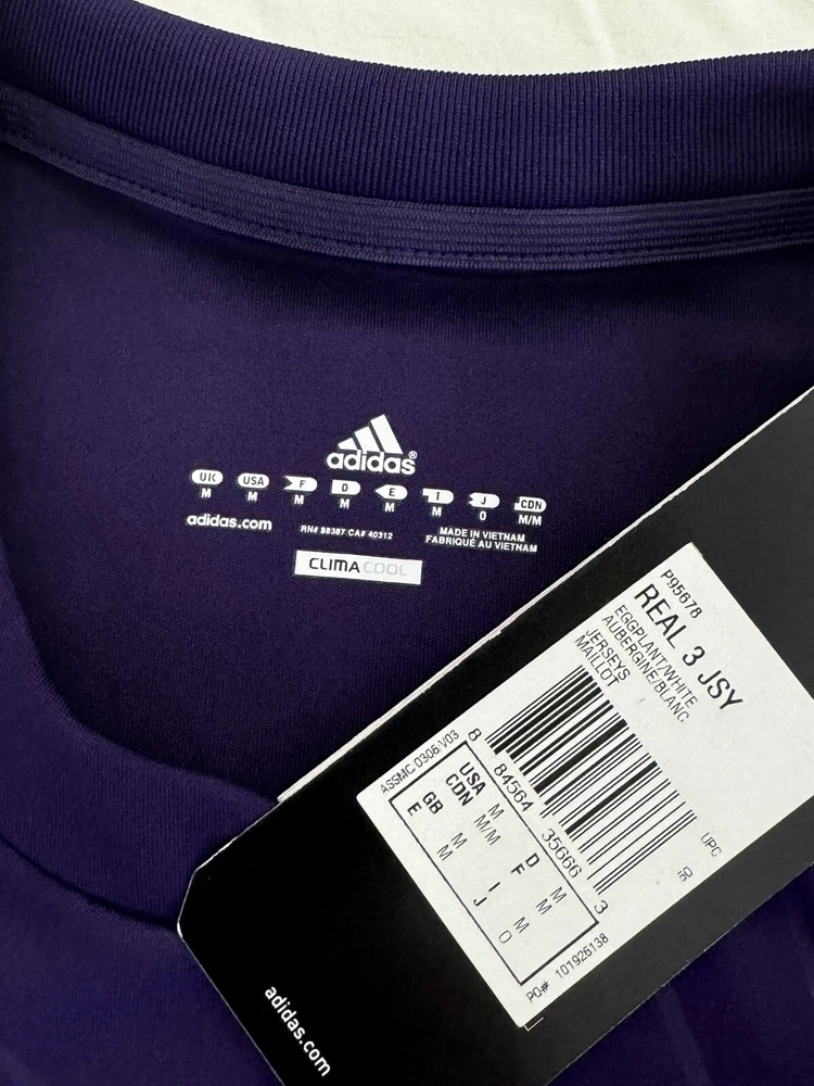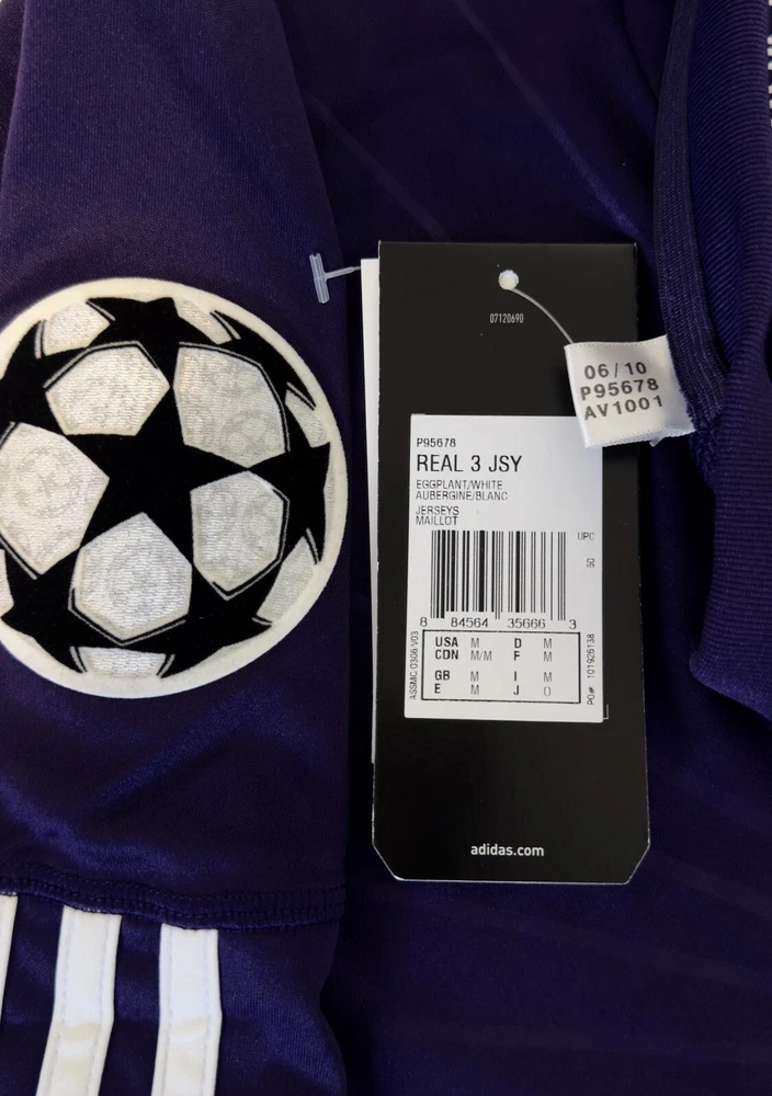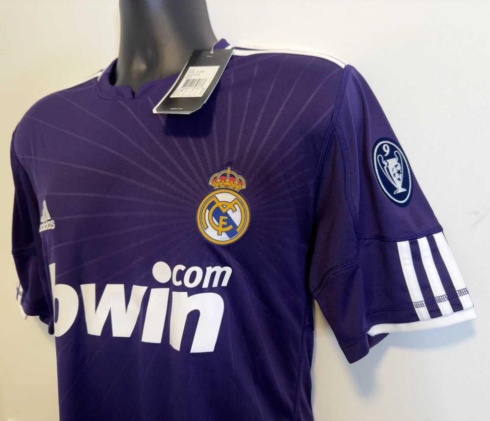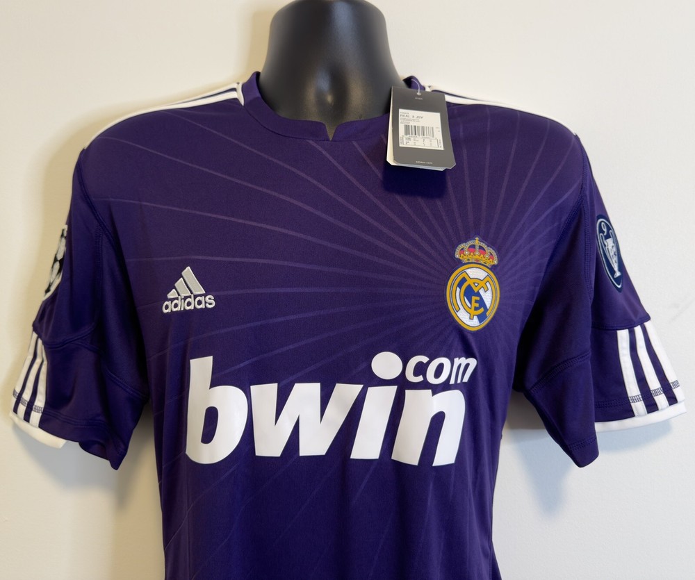 MEDIUM BNWT Real Madrid 2010/11 Third Jersey Shirt 10/11 3rd Top Kit Ronaldo Era. Dispatched via Canada Post. Authentic Real Madrid FC X Adidas product. Product code: P95678 Brand new with tags condition. No stains, holes, marks or other blemishes on the fabric. The shirt has been stored out of direct sunlight to avoid any heat related damage. Shirt sponsor (bwin) is in perfect condition with no peeling, cracking or lifting. Adult size Medium (M). Pit-to-pit measurement is approximately 21 inches. Shoulder-to-hem measurement is approximately 30.5 inches. Official Champions League Star Ball patch on right sleeve. Official Champions League Trophy (9 times winners) patch on the left sleeve. The patches are the official flock material and have been professionally applied. They show no peeling or other signs of wear. All pictures are my own and are of the exact shirt you will receive. All available items ship from a pet-free and smoke-free environment. All purchases will be packed securely and shipped the next working day.