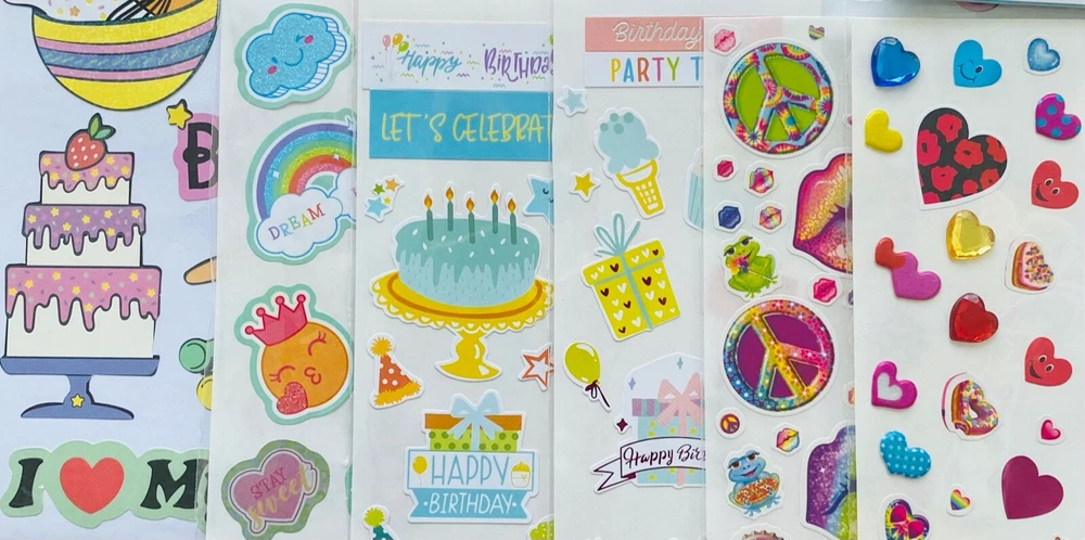 gtin13: Does not apply Brand: SANDYLION + UNBRANDED Country/Region of Manufacture: United States Color: Multi-Color Type: Glossy Foil Neon Pop Up 3D Puffy Embellished Metallic Vinyl DIY UPC: Does not apply Theme: Animal Cats Paws Birds Butterflies Fruit Flowers Plants Farmhouse