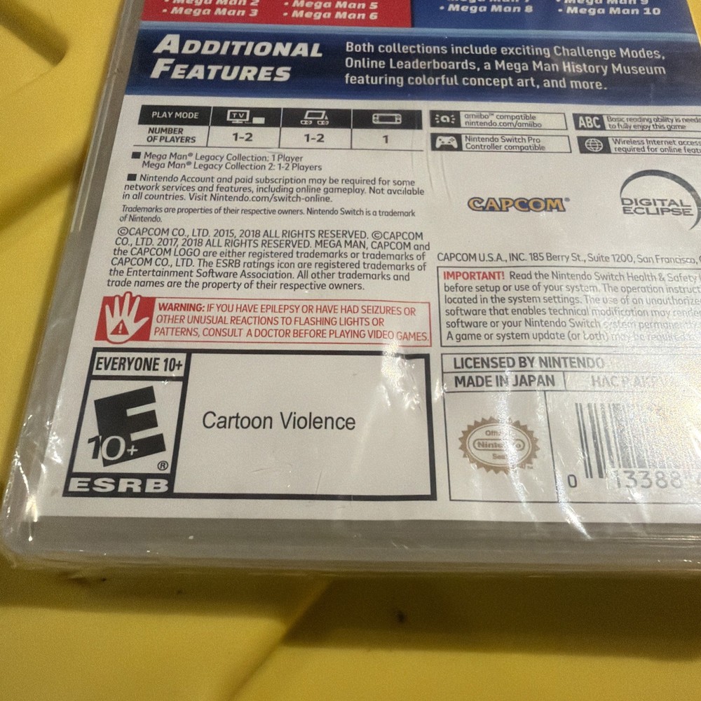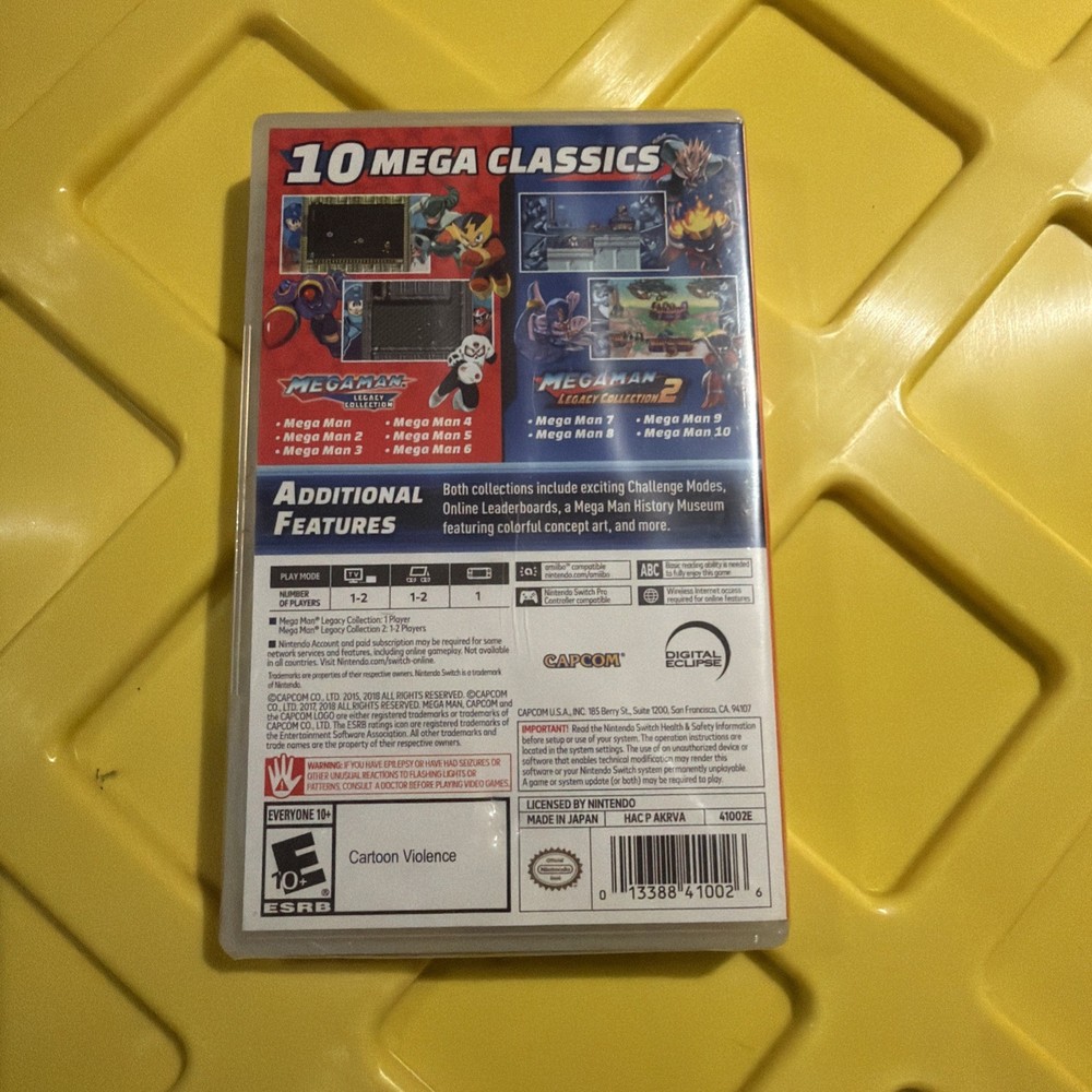 Please see pictures plastic has a little rip on it and a little damage on box but plastic still on it. The MEGA MAN Legacy Collection 1 + 2 for Nintendo Switch is a rare variant edition that includes a cloth accessory. This special edition features the iconic MegaMan video game series published by Capcom, offering players a nostalgic gaming experience with a modern twist. With multiplayer capabilities and a mix of battle, platformer, and action & adventure genres, this collection is perfect for fans of T-Teen rated games. The physical item dimensions are 6.67 x 4.14 x 0.42 inches and it weighs 0.13 lbs, making it a collectible and sought-after product for gamers.(3)