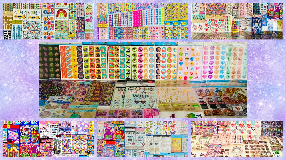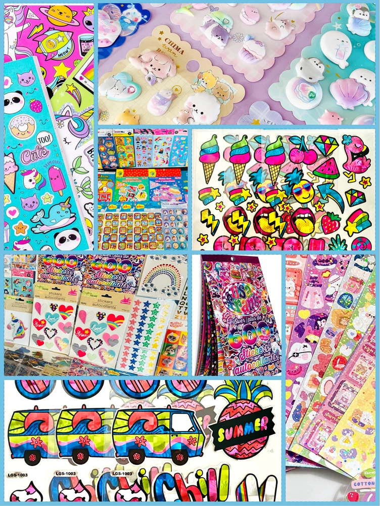 Type: Paper + Textured + Vinyl + BOPP + Die Cut + Sheets + Puffy gtin13: 195464164365 UPC: 195464164365 Theme: Animal + Nature + Sports + Food + Travel + Numbers + Letters Color: Multi-Color Brand: Assortment of Popular Brands