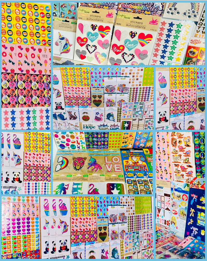 HUGE Mixed Sticker Lot | The Ultimate Kit | Qty. 1399+ Stickers | High Quality Only! Fun Assortment of Puffy, Scrapbook, Cartoons, Bubble, Pop Up Stickers Packs For Everyone! You will receive 39+ Packs of beautiful colorful assortment. The Pack will include 1399+ Stickers overall! I have included a large variety of pictures of the assortment available. The pictures give you an idea of what you will be receiving. Please Note: You will not receive everything pictured. Please contact me with any special requests. This HUGE Variety of fun designs stickers can be used in parties, classroom, school and home, good for reward for students, potty training, adding inside a birthday card, game activities, entertaining toddlers, etc. Perfect Gifts for Kids & all Occasions: Can be given as a gift for kids, girls, boys, toddlers, teens, students, friends, and classmates, they will love it!