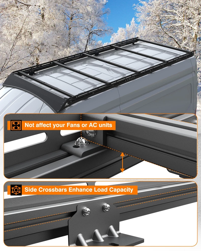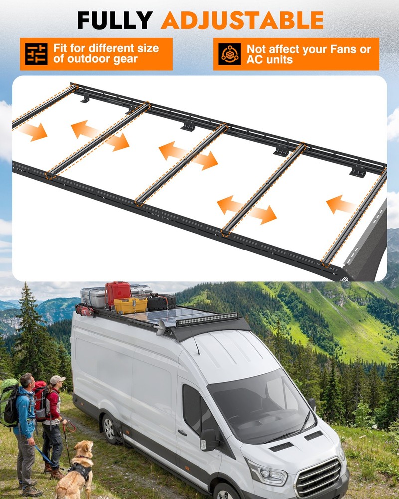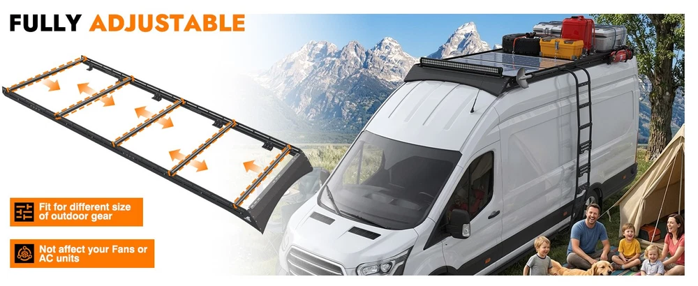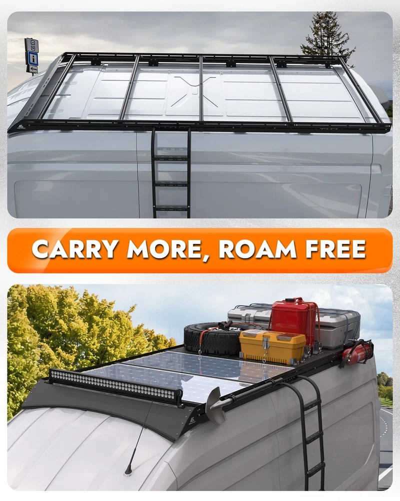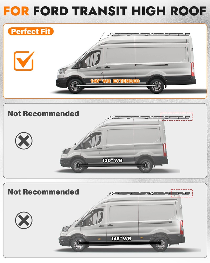 MELIPRON Aluminum Van Roof Ladder Rack for ford transit high roof 148"WB ext Trusted by 500K+ Van Owners Balance Your Life & Work Let's start an adventure and explore the future of infinite possibilities with MELIPRON! Convenient:Balance your life and work, making your messy life more orderly. Challenge:Enjoy your adventure world, search for freedom, enjoy life. Comfortable:Free up more internal space, carry all you need and more to start one trip ABOUT THIS ITEM MELIPRON Camper Van Roof Rack Fit for ford transit high roof 148"WB ext, Low Profile Aluminum Rack with Wind Fairing & L-Style Solar Panel Crossbars Solar-Optimized Design: Van roof rack is equipped with L-style crossbars for quick and secure installation of solar panels, making it ideal for camper van power setups Low-Profile Aerodynamics: Sleek aluminum rack with integrated wind fairing reduces drag and wind noise, improving fuel efficiency and maintaining a clean factory look Strong Load Capacity: Camper van rack is engineered for heavy-duty use with up to 300 lbs dynamic and 500 lbs static weight support, perfect for rooftop tents, solar arrays, or cargo storage Durable & Weather-Resistant Build: Modular rack made from lightweight aluminum construction with black powder-coated finish resists rust and corrosion. High-strength steel brackets with rubber pads provide stability, shock absorption, and leak protection No-Drill Easy Installation: Use factory mounting points—no drilling required. Van rack is compatible with awnings, ladders, and other rooftop gear secured by straps or brackets. Backed by a 1-year warranty for peace of mind Fit for Ford Transit: Roof rack is customed to fit for ford transit high roof 148"WB ext models, providing a secure base for solar panels and camper accessories NOTE: Items will be sent to your ebay shipping address only, so please confirm your available address on ebay before you pay. Handling Time: All our items are shipped from the United States , your items will be shipped within 2 business day when we received payment. If you make an order and pay before 1 PM PST on business day, we will most likely ship out the item the same day! Shipping Method: All items will be free of charge for Express Shipping via USPS, UPS or others . Absolutely Fast and Safe! Every package has tracking number. Estimated Delivery Time: The United States package usually takes about 2-7 days to reach you. The actual time depends on the distance between the destination and the warehouse and the schedule of the post office. International package usually takes about 7-20 days to reach you. After the package arrives in the eBay global transit ware, kindly please contact ebay customer service for the new status of the package. We accept PayPal, MasterCard, Visa, American Express, Discover and etc payment. All Payments must be Confirmed (Shipping and billing addresses must match) Payment is required within 7 days from the date of the auction ending. 100% Satisfaction Guarantee : If you're not 100% satisfied with our items, simply return it for a full refund in 30 days (Items must be in new condition and in original package). Kindly please feel free to contact us before return. Return or Replacements : Support 10 years' Warranty. All product will be tested in 100% before delivery. If the item is was damaged in transit, kindly please contact us for a replacement or refund (Excluding contrived damage or misuse). We left positive feedback for you after receiving payment. Your feedback is very important for us, positive feedback and 5 Score DSR is highly appreciated. Please let us know before leaving any negative feedback or 1 point, 2 point low DSR or open any disputes on Paypal and Ebay, kindly please give us the opportunity to resolve any problems and we will try our best to satisfy your needs. Any question, kindly please feel free to contact us via "Ask seller a question" . We try our best to reply to your emails as soon as possible, due to high volume of daily incoming emails and time zone difference, we may not be able to reply your emails immediately. Please allow 24 hours for us to response. Your understanding will be highly appreciated! SHIPPING ABOUT US Return & Warranty Leave feedback Contact us SHIPPING DELIVERY DAYS: 3-7 BUSINESS DAYS 3 BUSINESS DAYS SHIPPING OUT SHIP FROM CA & TX & NJ & GA & NC &OR WAREHOUSE California Warehouse: City of Industry, CA Texas Warehouse : Houston, TX New Jersey Warehouse : Perth Amboy, NJ New York State Warehouse: Perth Amboy, NJ Georgia Warehouse: Austell,GA North Carolina Warehouse: Grove NC Oregon Warehouse: AIRPORT WAY Portland,OR ABOUT US Welcome to our eBay store. As a leading and emerging company in manufacturer and exporting business, we are specialized in AUTO PARTS, Business and Industrial Products, Sporting Goods, Home and Garden products for more than 10 years. We believe that it is our vision and mission to provide innovative products with best service and competitive price to satisfy you. Our goal is to make sure that you can find exactly what you are looking for and make it easy for you to place your orders. Return & Warranty 1. 30 Days Free Returns, please notify us within 30 days after you've received your purchased item. 2. All return requests must be submitted through your eBay account. 3. Return shipping shall be the responsibility of the buyer. We pay the shipping when it is our fault. 4. Items to be returned must be in resalable condition. 5. All returns are for refund ONLY. No exchange accepted. Leave feedback If you are not satisfied for any reasons, please do not be so quick to leave negative/neutral feedback. We work hard to make sure EVERY CUSTOMER 100% SATISFIED and resolve any problems for you and always leave positive feedback to all our customers. If you are satisfied with the product you received, please kindly leave us a positive feedback and 5 scores DSR. Thanks! Contact us Email Customer Support: 9:00am-2:00am PST Sunday-Friday All emails will be resp