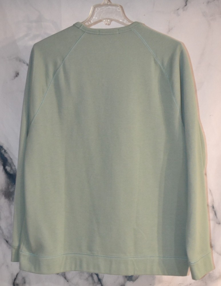 Materials - 55% Cotton, 45% Polyester Condition: Very good Gray green sweatshirt Long sleeves Machine wash cold gentle, tumble dry low No buttons or zipper No slits Unlined Measurements Chest 50" Waist 49" Sleeves 25.5" Length 29.5" Condition Glossary: New - New with tags attached, unworn Excellent - Shows no signs of wear, flawless Very Good - Minimal signs of wear, no flaws unless otherwise noted Good - An item that is special and unique but has heavier wear and/or flaws as noted inkfrog terapeak