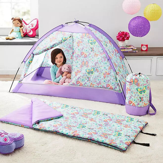 *SALES TAX NOW CHARGED ON ALL ORDERS* ITEM IS NEW IN PACKAGING! ITEM IS PERFECT! Your kids are going to love the Member’s Mark Slumber Set. This three-piece set includes a indoor tent, a sleeping bag, and a convenient bag to carry it all. Slumber parties are the best, and with the the Member’s Mark Slumber Set, your child can take a slumber party anywhere they go! The tent is easy to set up and provides a relaxing place to read, play or fall asleep. The measurements for the indoor tent are 60" x 36" x 36". The measurements for the sleeping bag are 28" x 56". The carry bag measures 9.84" x 9.84" x 16.93". Choose from 4 stylish and fun patterns: Pink Unicorn, Butterfly, Dinosaur, and Space. All the pieces pack neatly into the carry bag for easy storage and transport. This set is great for children ages 3 and up. Matching Sleeping bag made from Breathable Polyester Material Matching carry bag All items fit into the carrying bag for easy transport Indoor Tent 60" x 36" x 36" Sleeping Bag 28" x 56" Carrying Bag 9.84" x 9.84" x 16.93" ALL GLASS 3 J