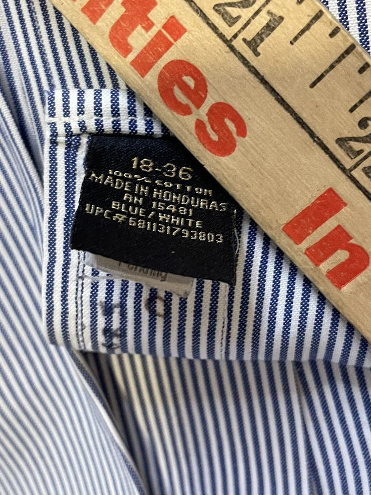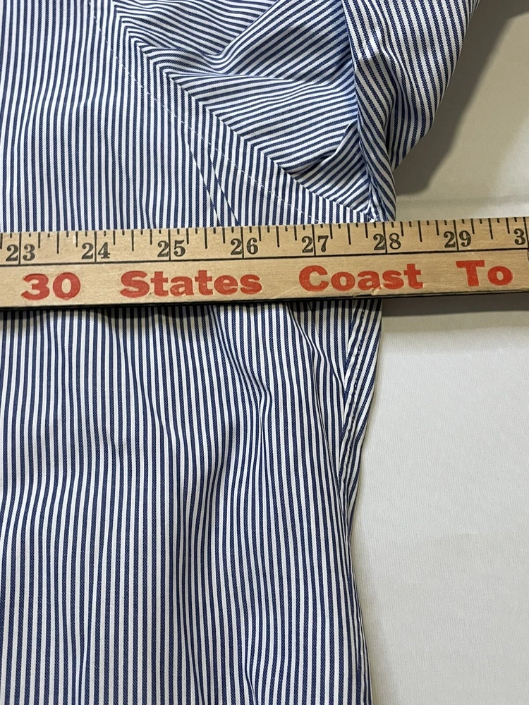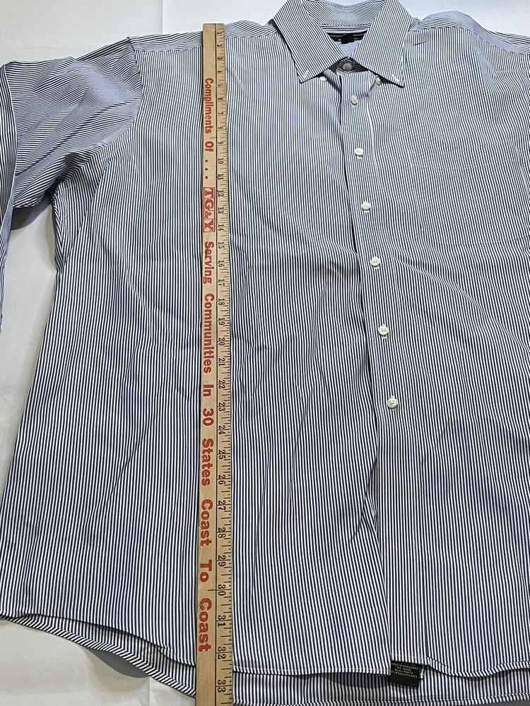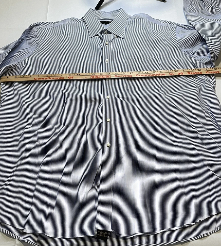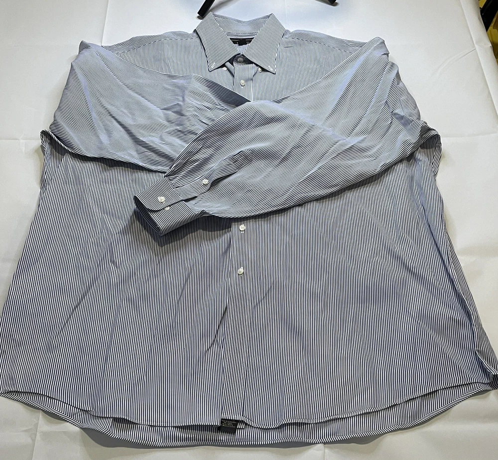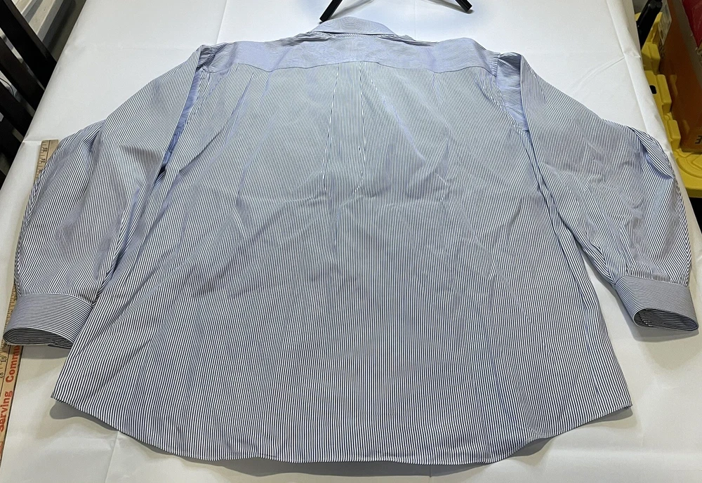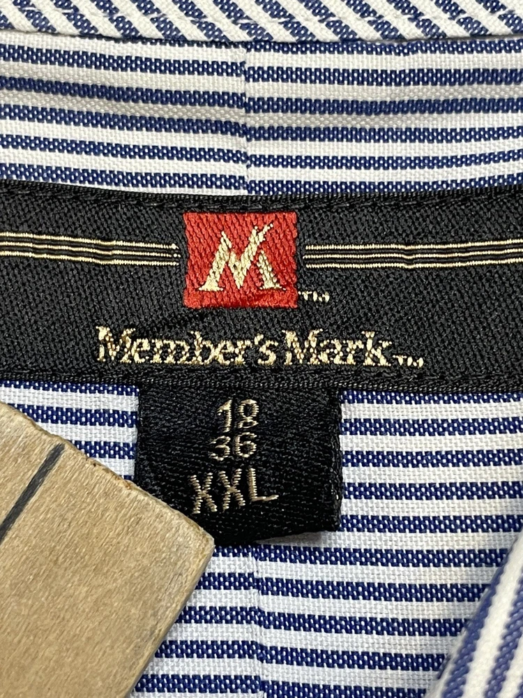 This Member's Mark button-up shirt is a classic addition to any wardrobe. The blue and white striped pattern adds a touch of timeless style, while the button-down collar and long sleeves make it suitable for any occasion, from casual to formal. Crafted from comfortable and durable cotton fabric, this shirt features a convenient pocket and is machine washable for easy care. Perfect for big and tall men with a chest size of 56 inches, this shirt is a must-have for any wardrobe, whether it's for work or play.CLOTHING AND FABRIC ITEMS: All Clothing and fabric items have been steam cleaned and/or washed per ebay standards. SIDE NOTE: We would not list anything that we ourselves would not wear or felt was not worthy of listing. The clothing items that don't make the cut are not listed and are donated to our local shelter for those that are less fortunate. If you have any questions about the clothes you are looking at please feel free to reach out to us and let us have the opportunity to answer your questions. If the item has a stain, hole, or tear/cut we will state that in the description above unless we happen to miss something. Thank you for the opportunity to earn your business.
