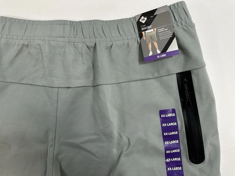 66 Rayon 30 Nylon 4 Spandex Elevate your summer style with these luxurious green Bermuda shorts from Member's Mark. Made from a comfortable blend of nylon, spandex, and rayon, these shorts feature a drawstring closure and stretch for a perfect fit. The flat front design and pockets add to the practicality of these shorts, making them a great addition to any wardrobe. Ideal for men of all sizes, these shorts are available in XXL size and are perfect for any occasion.