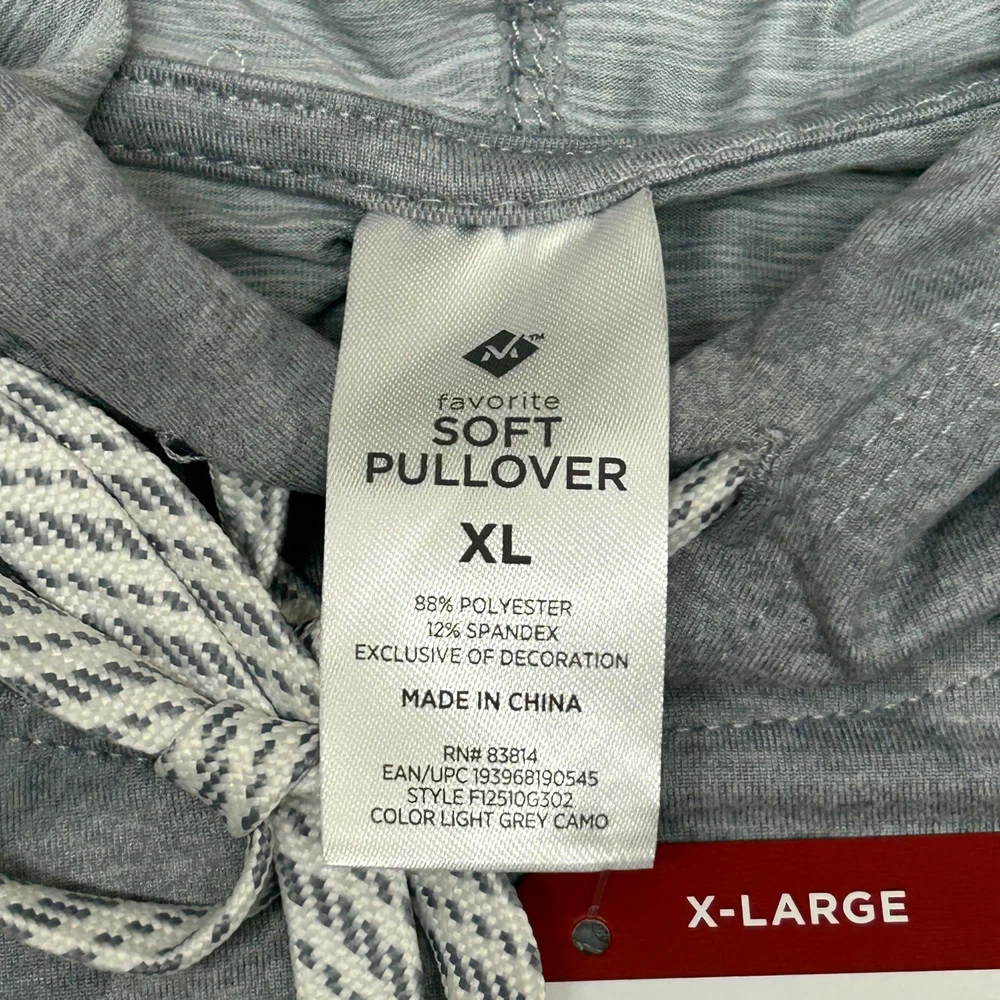 This pullover is incredibly soft and comfortable—perfect for lounging or running errands. The light grey camo design is stylish without being too bold, and the X-large fits just right. Great quality for the price, definitely a new favorite!