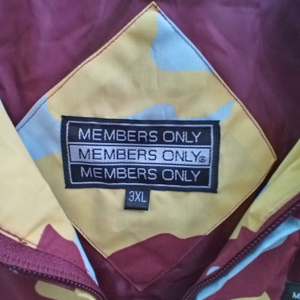 MEMBERS ONLY RAIN COAT JACKET UNISEX PLUS NEW WITH TAGS SIZE 3XL FULL ZIP CLOSURE LONG SLEEVE WITH HAT SHELL: 65% POLYESTER/ 35% COTTON BODY: 100% POLYESTER SLEEVE 100% POLYESTEE APPROXIMATE MEASUREMENT LENGTH 27" PIT T PIT FLAT 26" HEM T HEM FLAT 20"