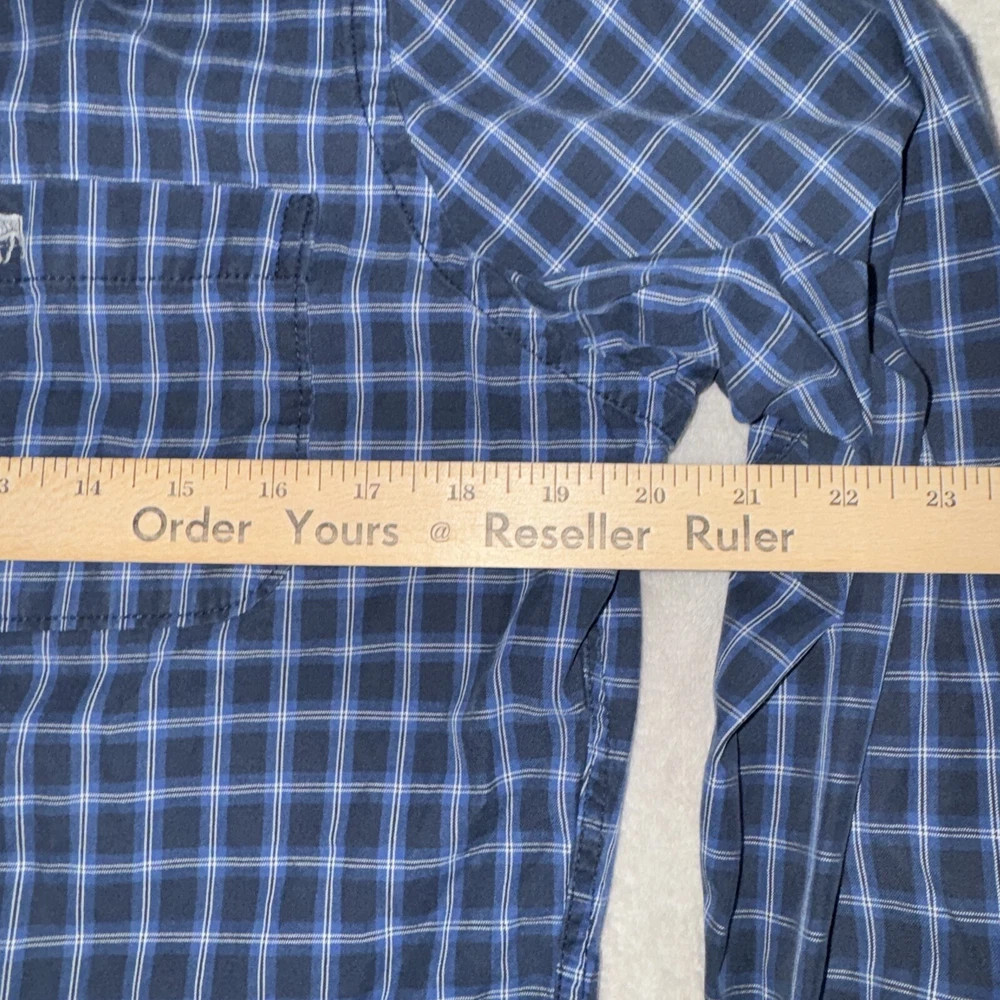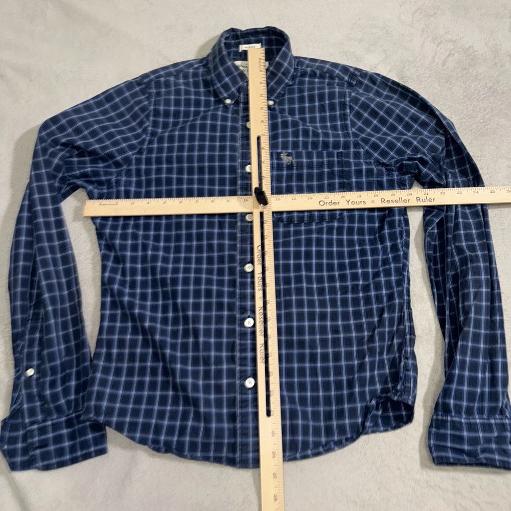 This Abercrombie & Fitch shirt is a must-have for any stylish man's wardrobe. The blue check pattern and collared neckline give it a classic and timeless look, while the muscle fit shows off your physique. Made for regular size, this long-sleeved button-up shirt is perfect for any casual occasion. The brand is well-known for its high-quality clothing and attention to detail, making this shirt a great addition to any collection. Don't miss out on this opportunity to elevate your style!