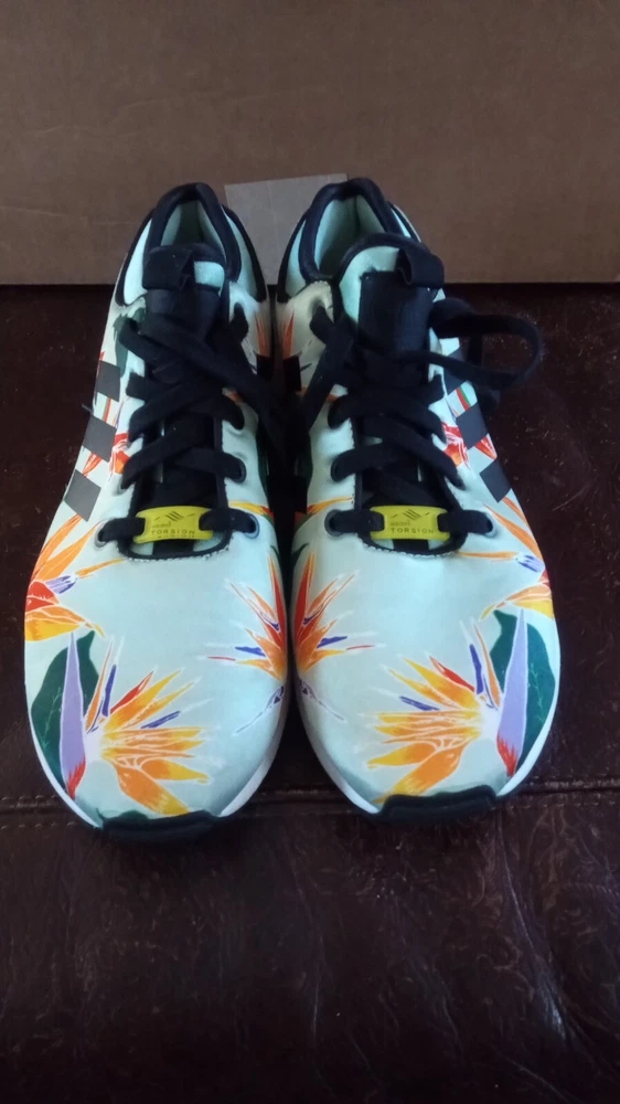 This pre-owned pair of men's Adidas Torsion low-cut sneakers is a perfect addition to your shoe collection. With a colorful multi-color pattern and a comfortable cushioned insole, these shoes are ideal for various activities such as gym and training, walking, and running and jogging. The lace-up closure ensures a secure fit, while the rubber outsole provides excellent traction and durability. These shoes are versatile and can be worn for casual wear, activewear, and workwear. The Adidas Low product line is known for its quality and performance, making these sneakers a reliable choice for any activity. Don't miss out on the chance to own a pair of these stylish and functional shoes. PRE OWNED IN NEW CONDITION. COLORFUL FLORAL PATTERN