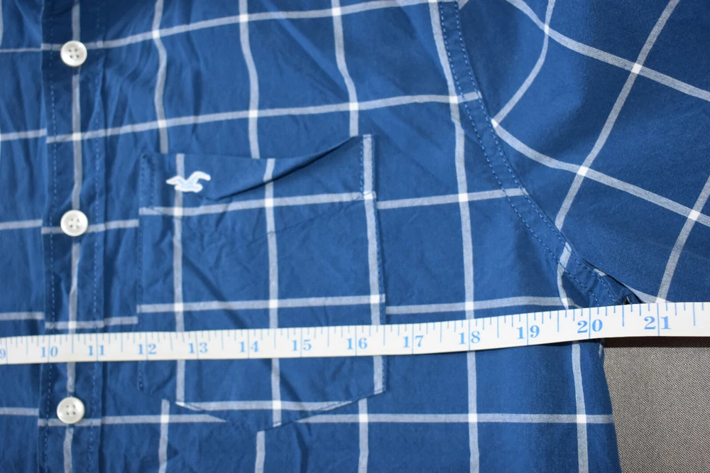 This item is a Men's Hollister long sleeve collared plaid shirt, size Medium. This item is preowned but is in fantastic condition with very little sign of being worn. This item comes from a smoke-free home and has no stains, snags, or rips. Rest assured we take pride in an honest description of our items. Please see photos for measurements. If there are any other questions please feel free to ask and we'll be happy to get back to you. Shipping/handling of this item is $6.00, sorry we only ship to the continental United States. After sale, your item will be prepared and shipped within 3 working days using USPS Ground Advantage. Thank you for looking at our item.