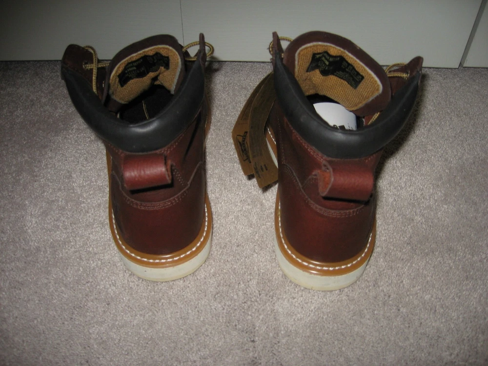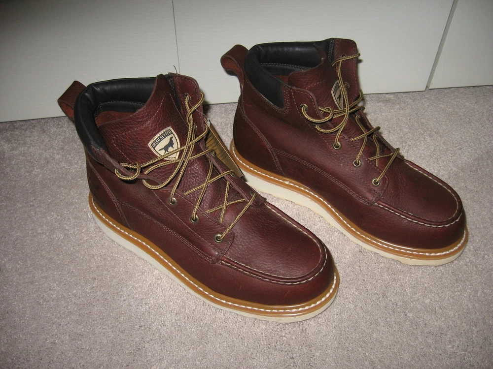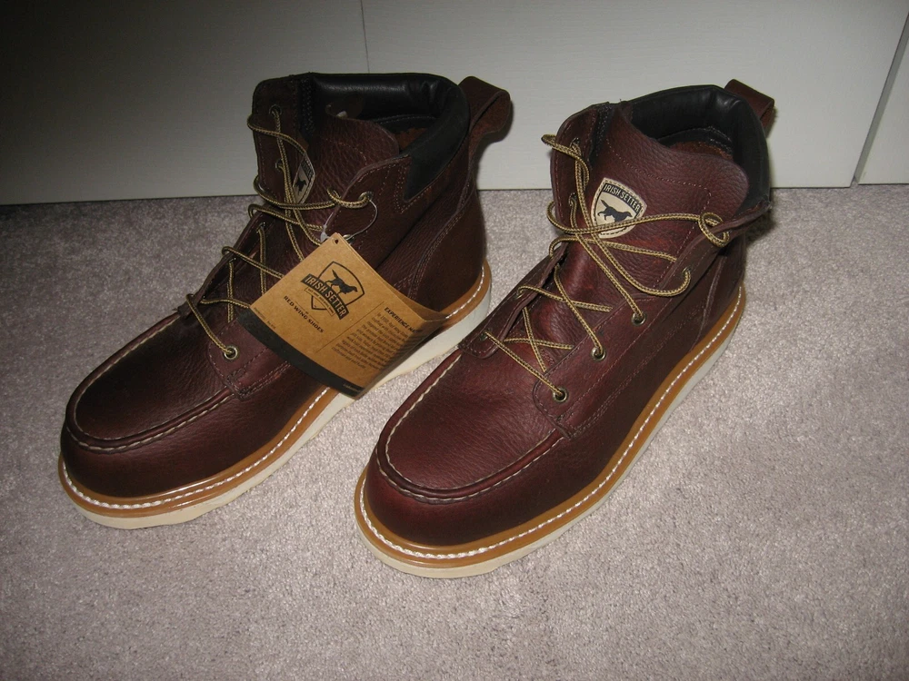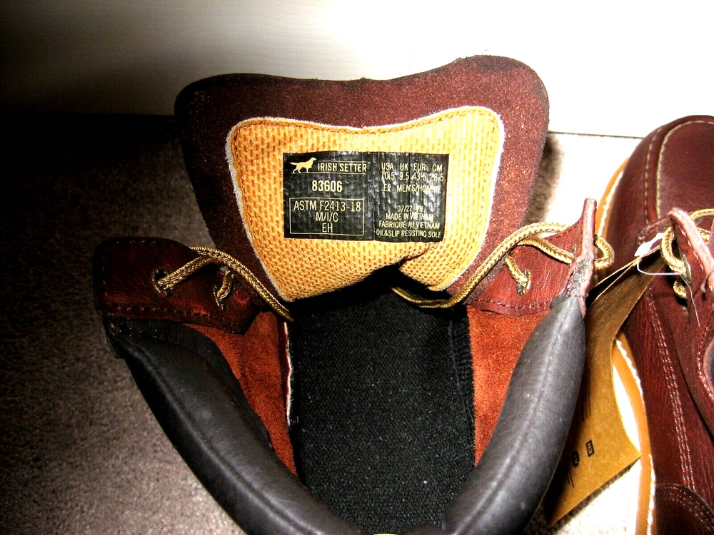 UP FOR AUCTION ARE A PAIR OF IRISH SETTER MODEL 83606 (RED WING) 6" ALUMINUM TOE - ELECTRICAL HAZARD RESISTANT BROWN LEATHER WORK BOOTS . THE BOOTS COME IN A 10.5 US SIZE AND ARE E2 WIDE . THESE BOOTS ARE LIKE NEW AND READY TO BE PUT TO USE . PLEASE USA BIDDERS ONLY . I WILL ONLY SHIP TO THE LOWER 48 STATES . PAYMENT MUST BE MADE THREE DAYS AFTER THE END OF AUCTION . THEY STILL HAVE THE ORIGINAL TAG BUT NO BOX . THANK YOU .