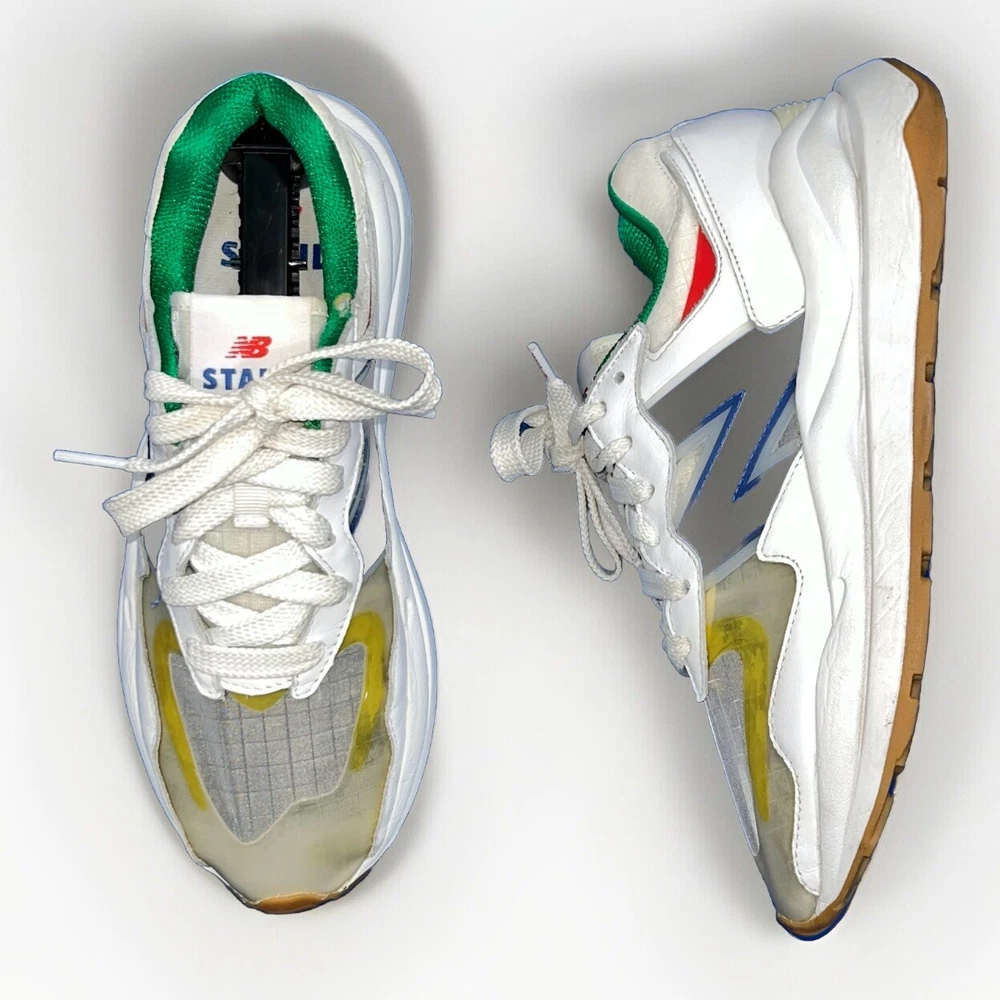 Elevate your sneaker game with these stylish and comfortable New Balance 57/40 sneakers, designed for men in size 7.5. Featuring a white colorway and a sleek lace-up closure, these sneakers are perfect for both walking and running. The upper material is made of a combination of leather and vinyl, providing a durable and breathable fit. With a shoe width of D and a product line of NEW BALANCE X STAUD, these sneakers are sure to impress. The style code is M5740SR and the EU shoe size is 40.5. Don't miss out on the opportunity to add these high-performance sneakers to your collection.
