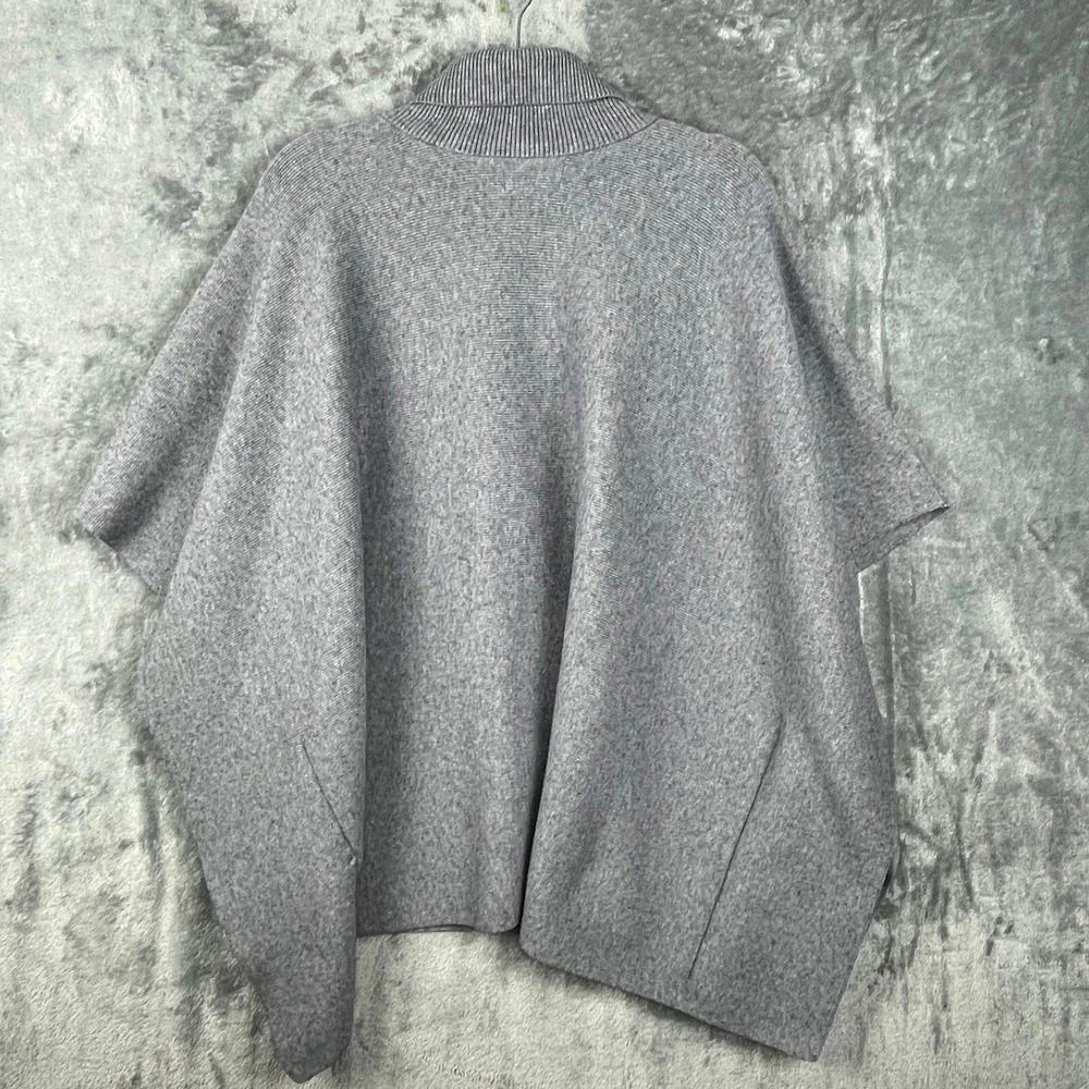 MERSEA Turtleneck Poncho Sweater Womens OS Gray Boxy Quiet Luxury Outdoor Cozy