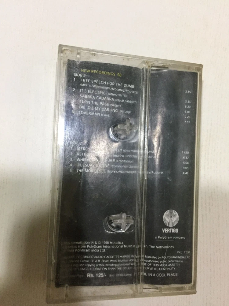 METALLICA GARAGE INC VOL 1 1998 RARE orig CASSETTE TAPE sticker INDIA indian