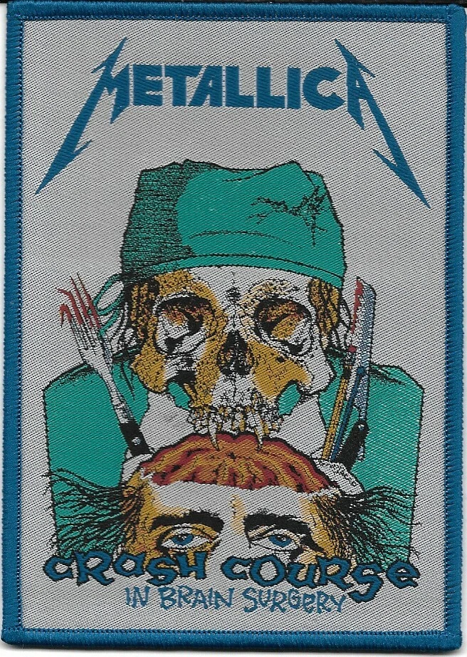 Brand New and Import !!! Metallica"Crash Course in Brain Surgery " Woven Patch with Blue Borders !!! Perfect for sewing onto Bags, Jeans and Jackets, or in fact, wherever you like! Patch measures 3.25" x 4.5" (8.25 cm x 11.43 cm) THE PATCH IS NEW. USA $2.99 FIRST PATCH (SHIPPING AND HANDLING WILL BE COMBINED, USA ONLY) AND REST OF THE WORLD $4.99 EACH PATCH(FIRST CLASS MAIL INTERNATIONAL,SHIPPING AND HANDLING). SEE MY OTHER ITEMS FOR MORE RARE TITLES.