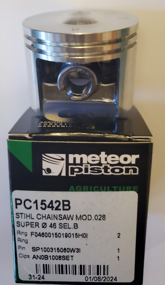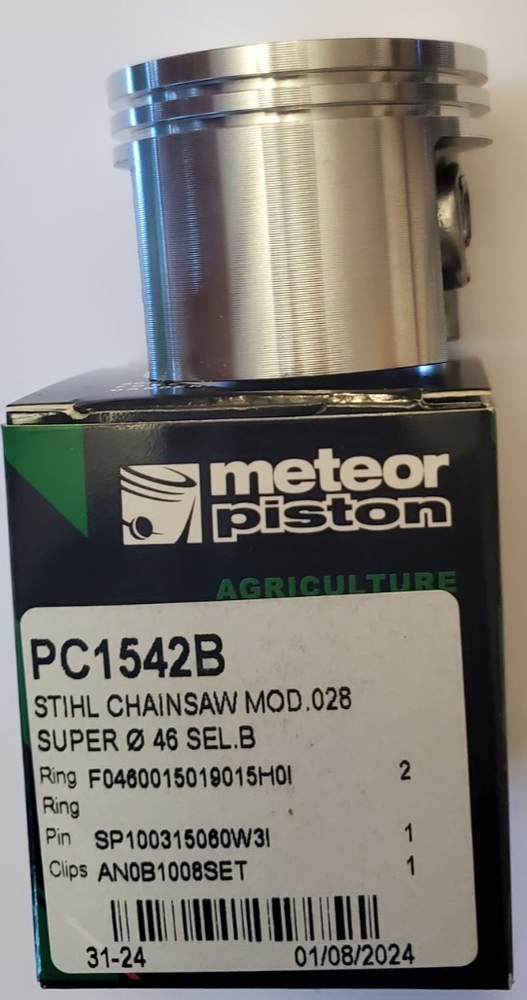 I HAVE BEEN USING METEOR IN MY OWN EQUIPTMENT FOR OVER 20 YEARS AND AM PROUD TO NOW BE AN APPROVED SUPPLIER FOR THE LAST TWO YEARS. I LEARNED VERY EARLY ON THAT A $13 OFF BRAND PISTON ONLY ENDS IN COSTLY DISASTER!!!! TRUST THE BEST AND ONLY USE THE BEST AND WHEN IT COMES TO AFTERMARKET PISTONS AND CYLINDERS METEOR IS THE ONE AND ONLY BEST!!!!! CHECK OUT OUR OTHER EBAY STORE https://www.ebay.com/usr/chainsawredeemer85 FOR THE REST OF OUR CURRENT METEOR INVENTORY AS WELL AS MANY OTHER GREAT CHAINSAW AND SMALL ENGINE PARTS. WE ARE WORKING FERVENTLY THROUGH MANY RECENT HARDSHIPS TO BUILD OUR INVENTORY SO IF WE DO NOT HAVE WHAT YOU NEED, WE SINCERELY APOLOGIZE SEE COMPLETELY FREE ENTERTAINING INSTRUCTIONAL VIDEOS ON MY YOUTUBE CHANNEL HERE: http://www.youtube.com/@chainsawredeemer85 (Most parts sellers who do instructional videos state you will receive a how to video ONLY AFTER you purchase their product NOT THIS GUY HERE I HAVE NEARLY 600 VIDEOS 85% OF WHICH ARE HOW TO) SHIPPING IS TYPICALLY SAME OR NEXT DAY VIA USPS GROUND ADVANTAGE. WE PACK THIS PRODUCT VERY WELL TO ENSURE IT ARRIVES SAFE AND UNDAMAGED. EACH BOX IS OPENED PRIOR TO BEING SENT TO INSPECT ALL PARTS ARE INCLUDED AND THERE IS NO FLAWS. WE SHIP INTERNATIONALLY TO COUNTRIES INCLUDED IN EBAYS INTERNATIONAL SHIPPING PROGRAM PLEASE ENSURE FITMENT PRIOR TO PURCHASE, ASK ANY QUESTIONS YOU MAY HAVE AS WELL. WE TRY OUR VERY BEST TO GIVE YOU AN ANSWER PROMPTLY AND ENSURE OUR FACTS ARE CHECKED MANUFACTURER OFFERS A 1 YEAR WARRANTY AGAINST MANUFACTURER DEFECT. This listing is for one Meteor piston kit including the piston, cast iron caber rings, wrist pin, and C-clips. It fits STIHL Chainsaw Models 028 SUPER 028AV SUPER 028WB SUPER 46MM -------. METEOR MEETS AND OFTEN TIMES ESCEEDS OEM QUALITY AND PERFORMANCE. Their products are made in Italy using the highest quality materials available. The cast iron caber rings are the BEST on the market, durable and strong as h*ll ensuring they last you a lifetime!!!