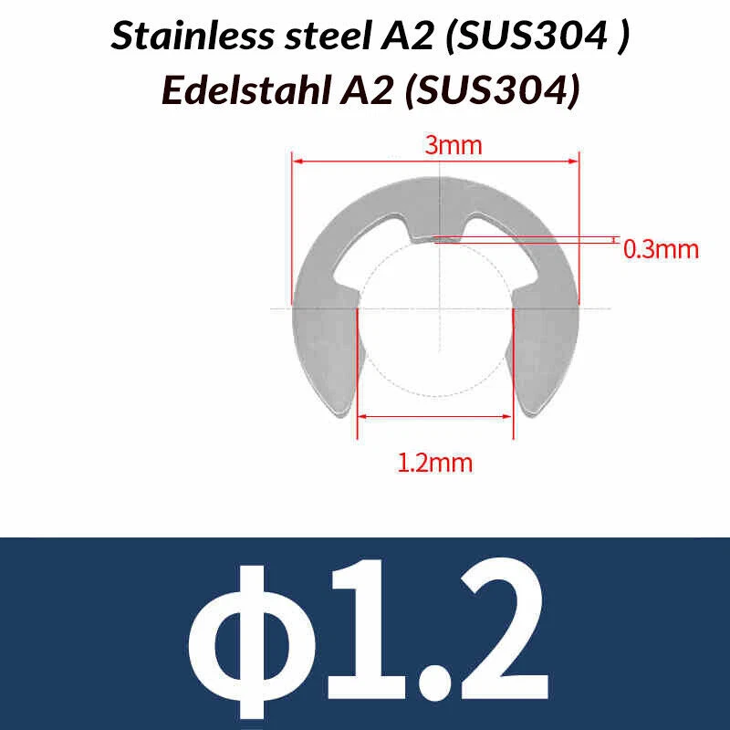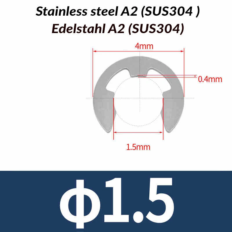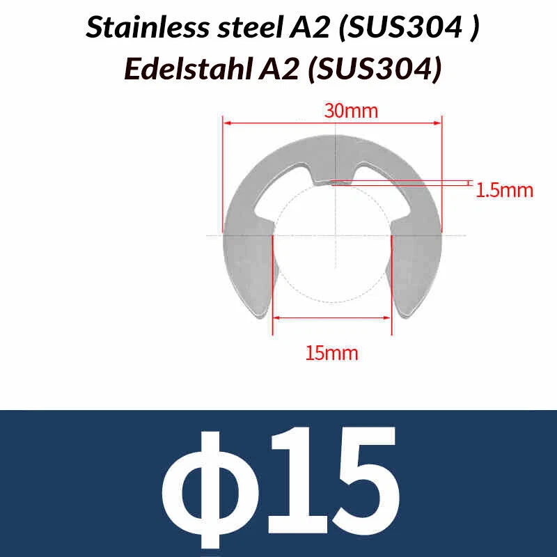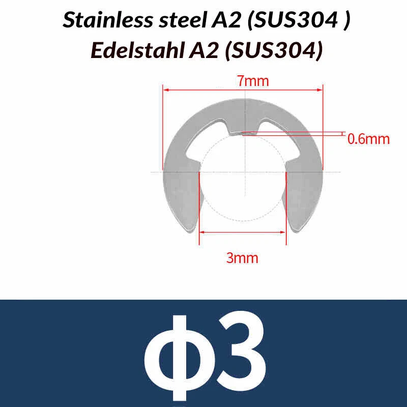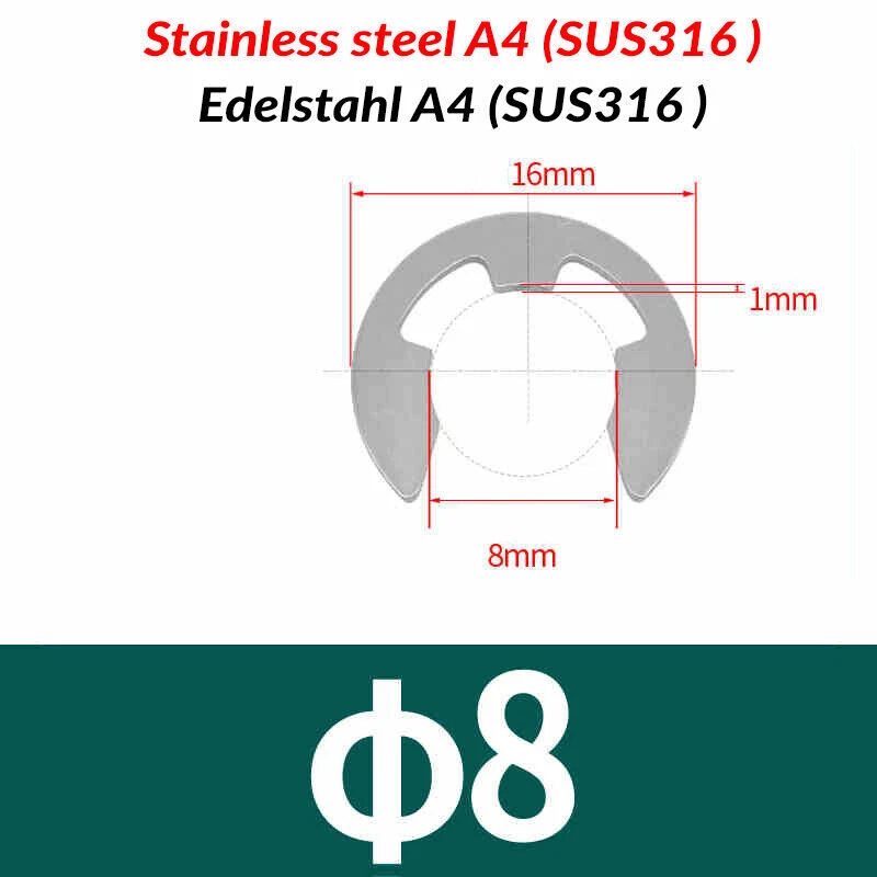 Material: A2 Stainless steel (SUS304) A4 Stainless Steel (SUS316) Size: 1.5 mm - 15 mm Standard: DIN 6799 (GB /T 896)