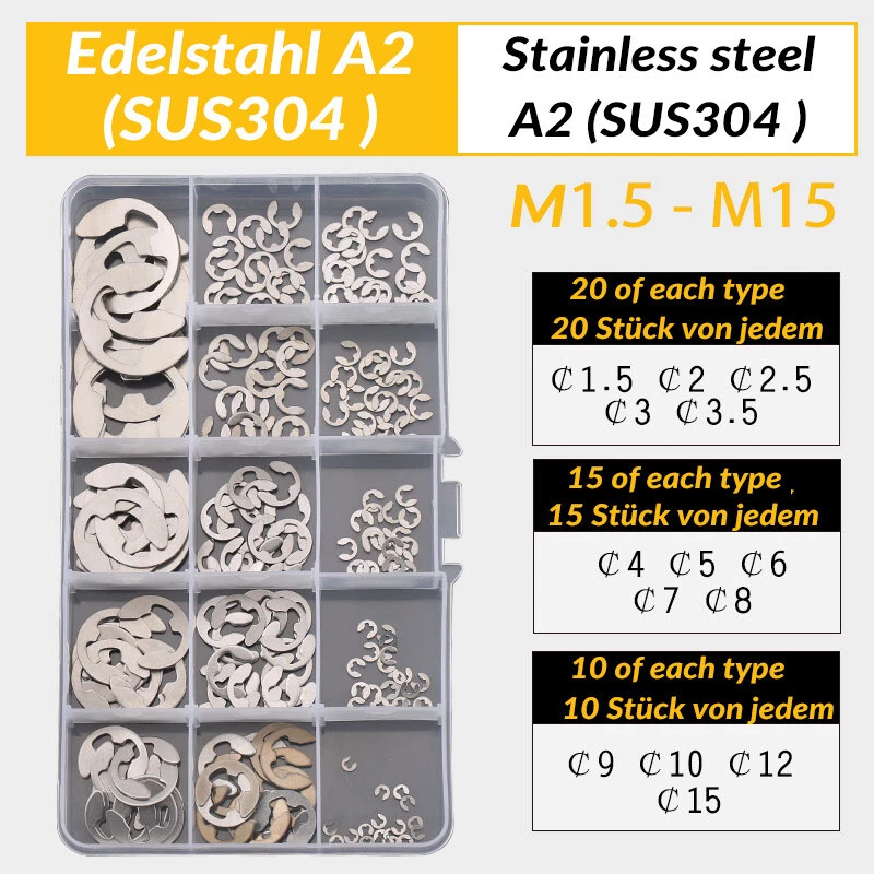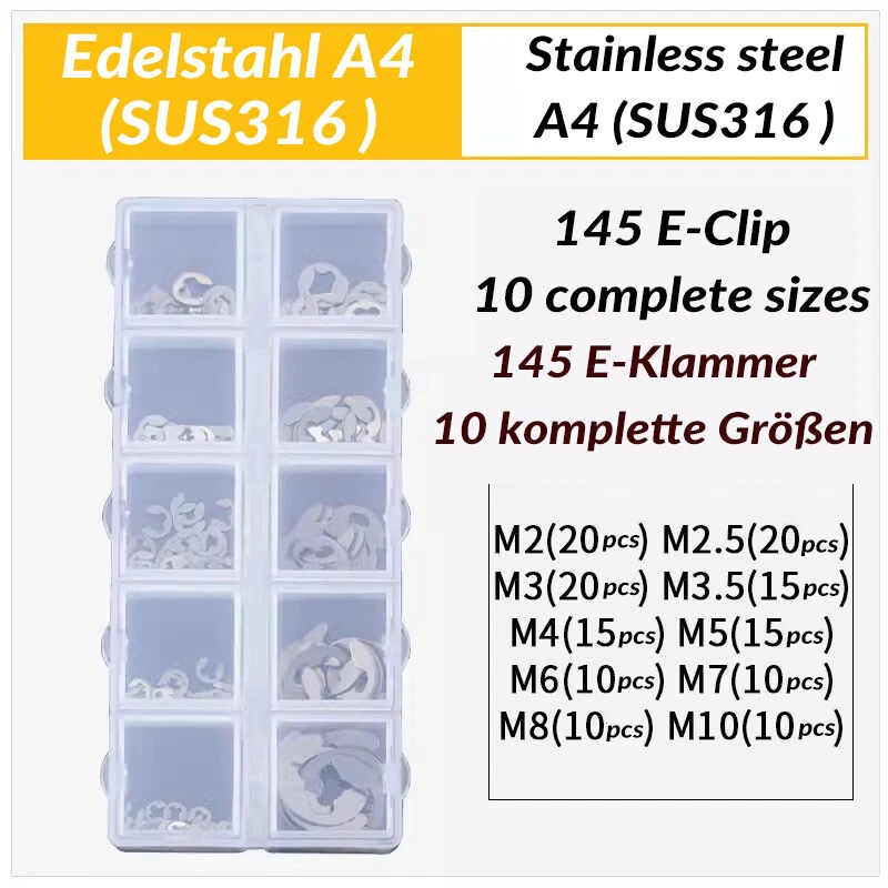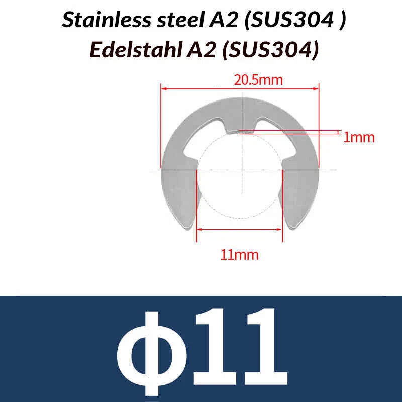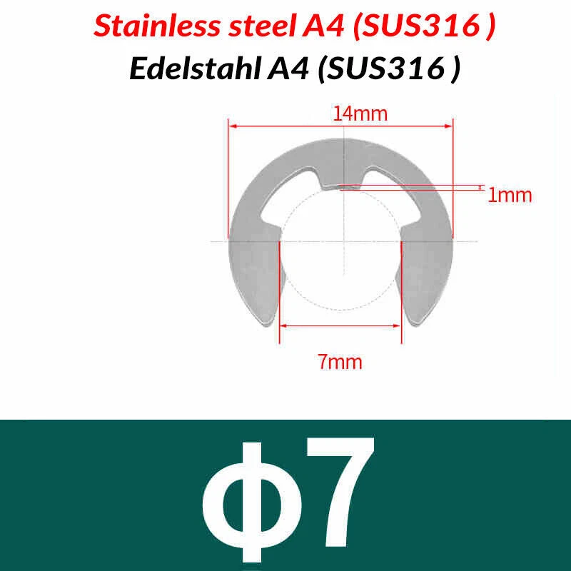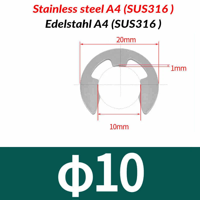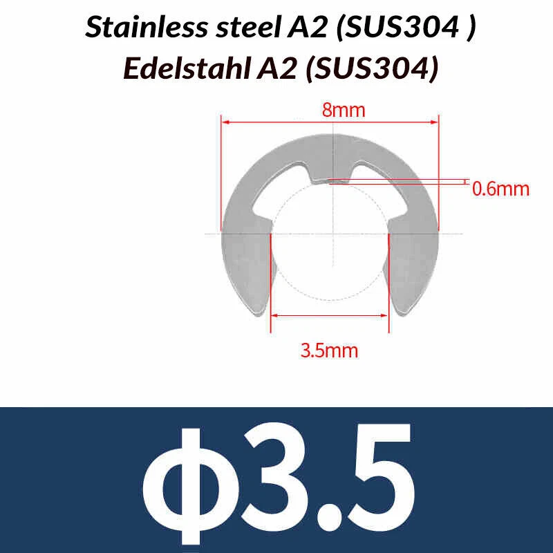 Material: A2 Stainless steel (SUS304) A4 Stainless Steel (SUS316) Size: 1.5 mm - 15 mm Standard: DIN 6799 (GB /T 896)