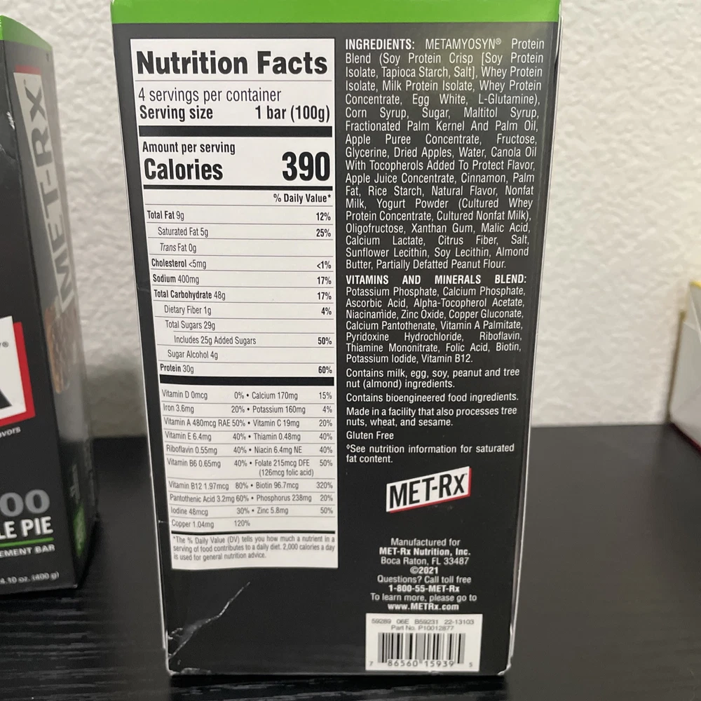 MET-Rx Big 100 Crispy Apple Pie Protein Bars 8Count (2Packs of 4 Bars).